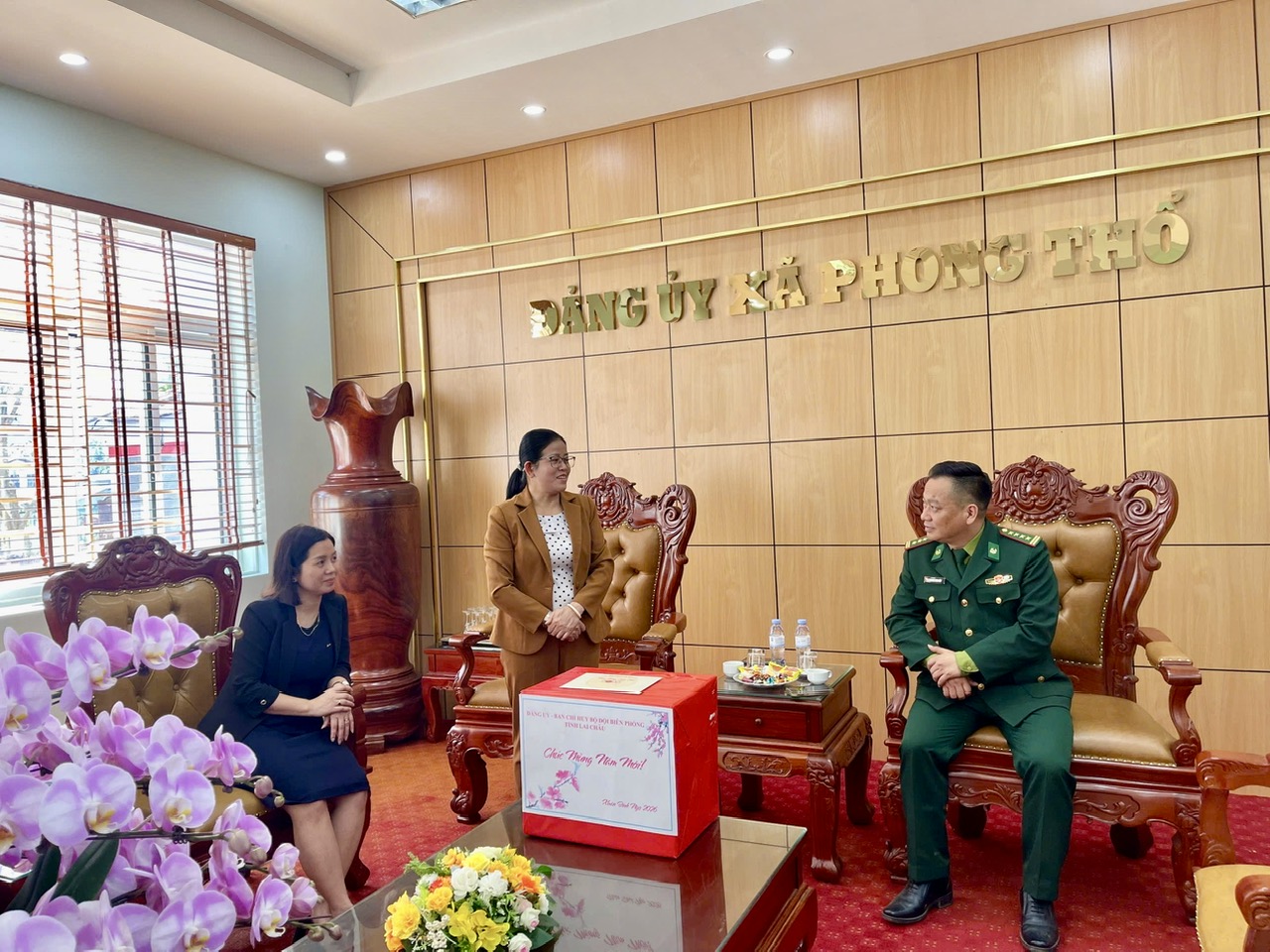 Nhân dịp Tết Nguyên đán Bính Ngọ 2026, chiều ngày 05/02/2026, Đoàn công tác Ban Chỉ huy Bộ đội Biên Phòng tỉnh Lai Châu do Đại tá Trương Minh Đức, Chỉ huy trưởng Ban Chỉ huy Bộ đội Biên phòng tỉnh làm trưởng đoàn đã đến thăm, chúc Tết Đảng ủy, HĐND, UBND, Ủy ban MTTQ Việt Nam xã Phong Thổ. Tiếp đón đoàn có đồng chí Vương Đào Tiên - Phó Bí thư Thường trực Đảng ủy xã; các đồng chí lãnh đạo UBND xã; đại diện phòng, ban xã.