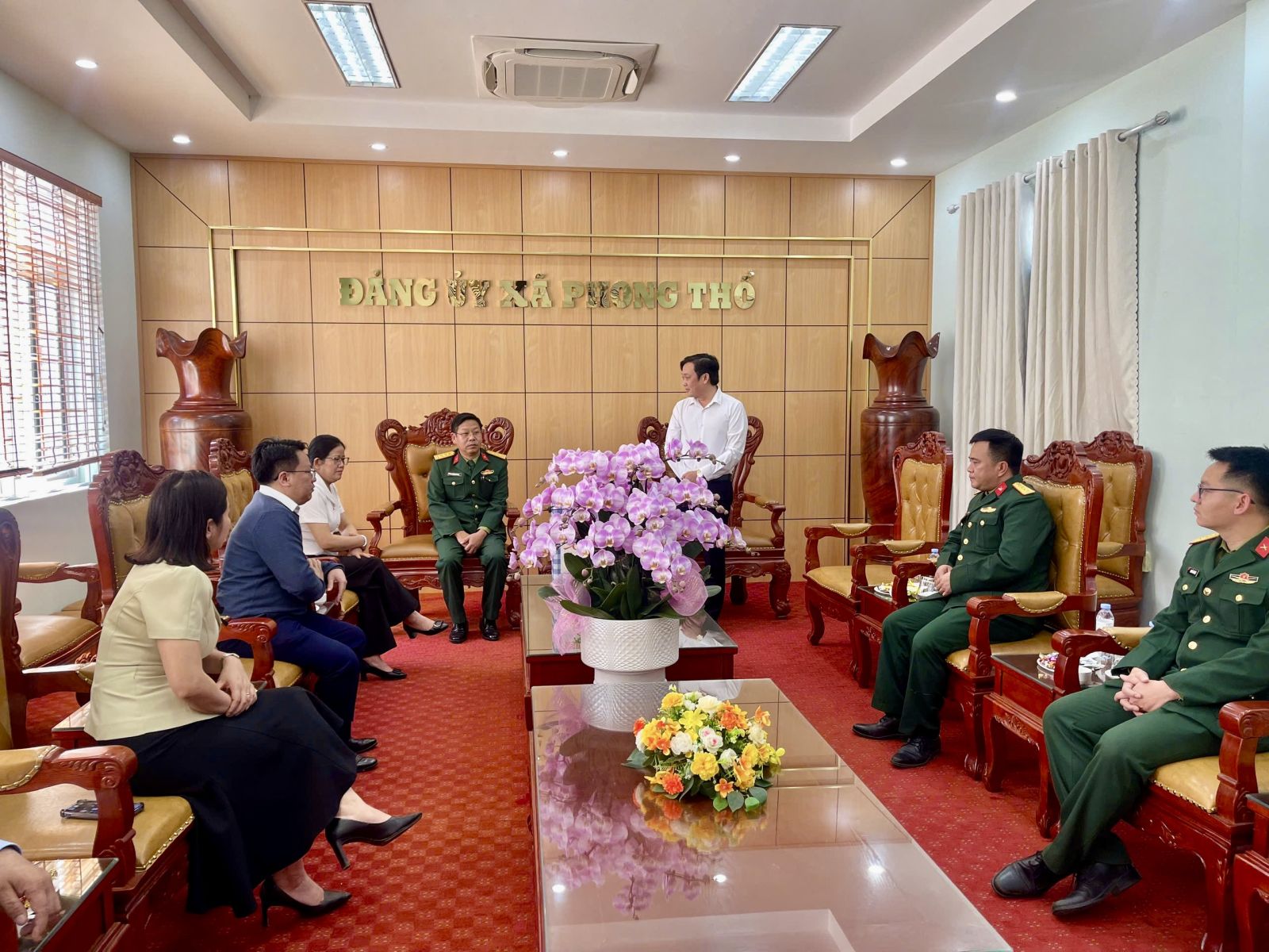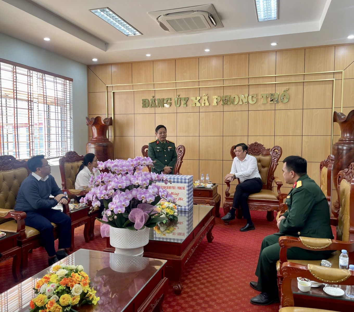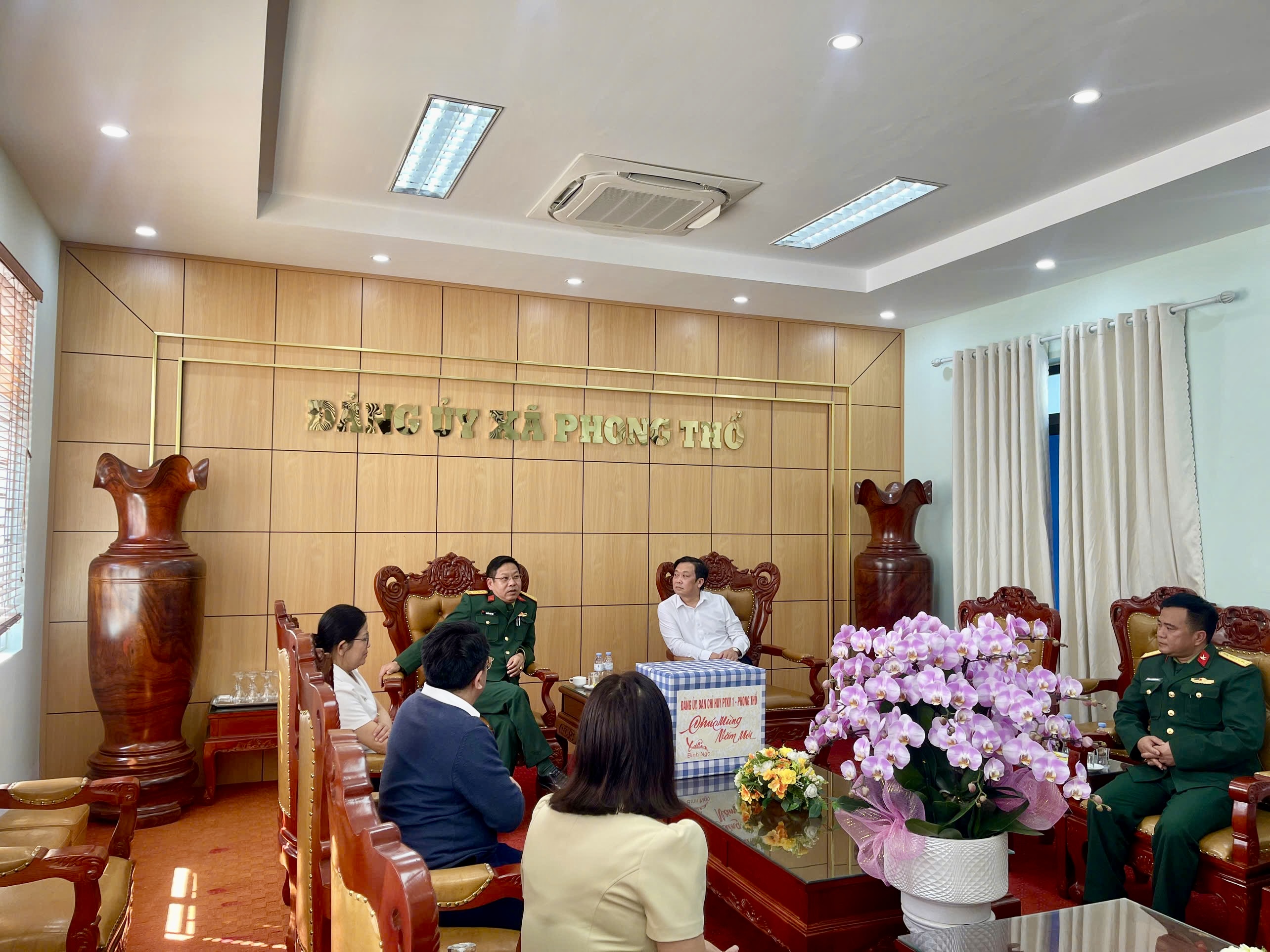 Nhân dịp Tết Nguyên đán, chiều ngày 6/2/2026, Ban Chỉ huy Khu vực phòng thủ 1- Phong Thổ do Thượng tá Nguyễn Hữu Yên, Bí thư Đảng ủy, Chính ủy Ban Chỉ huy Khu vực phòng thủ 1- Phong Thổ làm trưởng đoàn đã đến thăm, chúc Tết Đảng ủy, HĐND, UBND, Ủy ban MTTQ Việt Nam xã Phong Thổ. Tiếp đón đoàn có đồng chí Đinh Quang Tuấn - Ủy viên Ban Chấp hành Đảng bộ tỉnh, Bí thư Đảng ủy, Chủ tịch HĐND xã; đồng chí Vương Đào Tiên - Phó Bí thư Thường trực Đảng ủy xã; các đồng chí Thường trực Đảng ủy, HĐND, UBND, Ủy ban MTTQ Việt Nam xã.