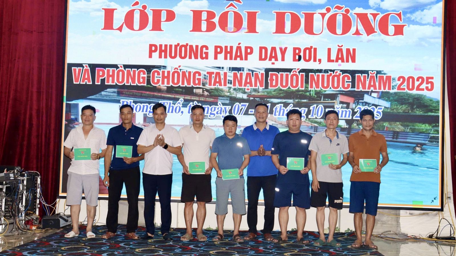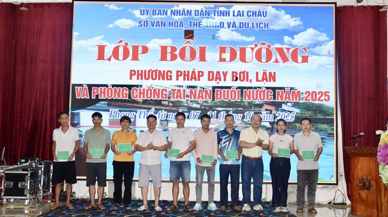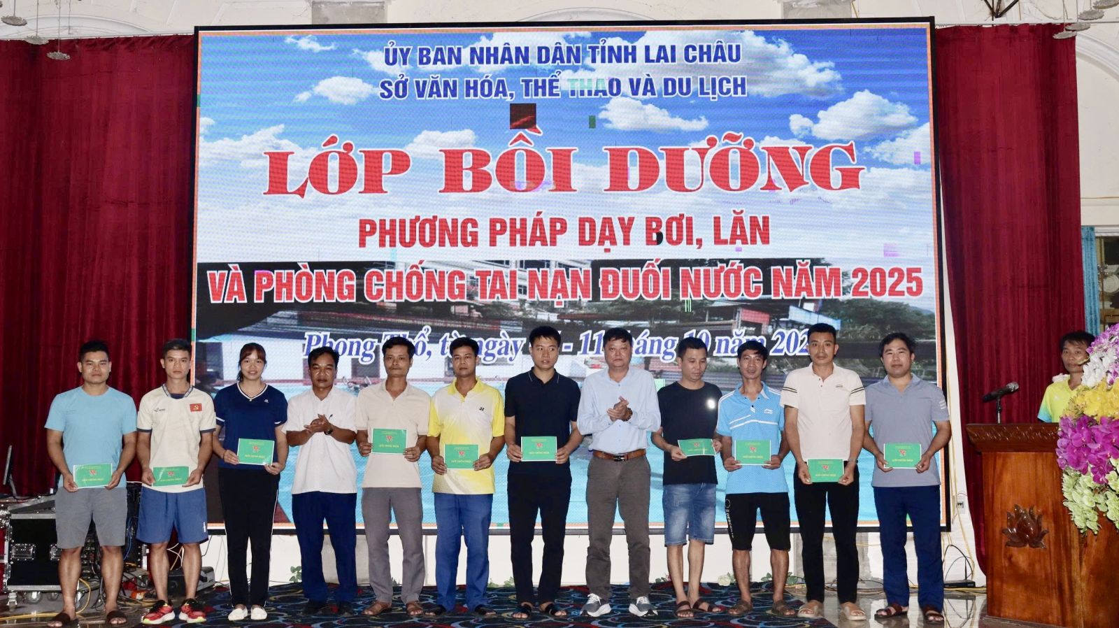 Chiều ngày 11/10, tại xã Phong Thổ, Sở Văn hóa, Thể thao và Du lịch tỉnh Lai Châu phối hợp tổ chức Bế mạc lớp Bồi dưỡng phương pháp dạy bơi, lặn và phòng chống tai nạn đuối nước năm 2025. Tham dự buổi lễ có đồng chí Trần Văn Công – Phó Giám đốc Sở Văn hóa, Thể thao và Du lịch; đồng chí Trần Xuân Kiên – Giám đốc Trung tâm huấn luyện và thi đấu thể thao tỉnh, các đồng chí đại diện lãnh đạo xã Phong Thổ, giảng viên và học viên.