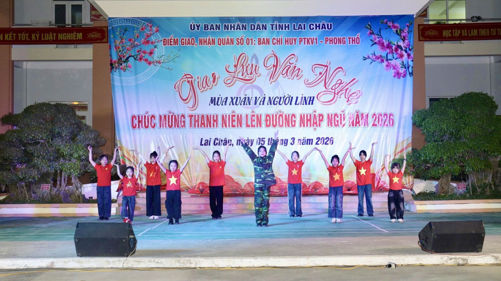 Tối ngày 5/3, Ban Chỉ huy Khu vực phòng thủ 1 – Phong Thổ tổ chức Chương trình giao lưu văn nghệ tiễn tân binh lên đường nhập ngũ năm 2026. Tham dự Chương trình có các đồng chí lãnh đạo Khu vực Phòng thủ 1 – Phong Thổ; Hội đồng nghĩa vụ quân sự các xã, phường; đại diện lãnh đạo các ban, ngành, đoàn thể cùng đông đảo đoàn viên thanh niên, người thân và các tân binh chuẩn bị lên đường thực hiện nghĩa vụ quân sự năm 2026.