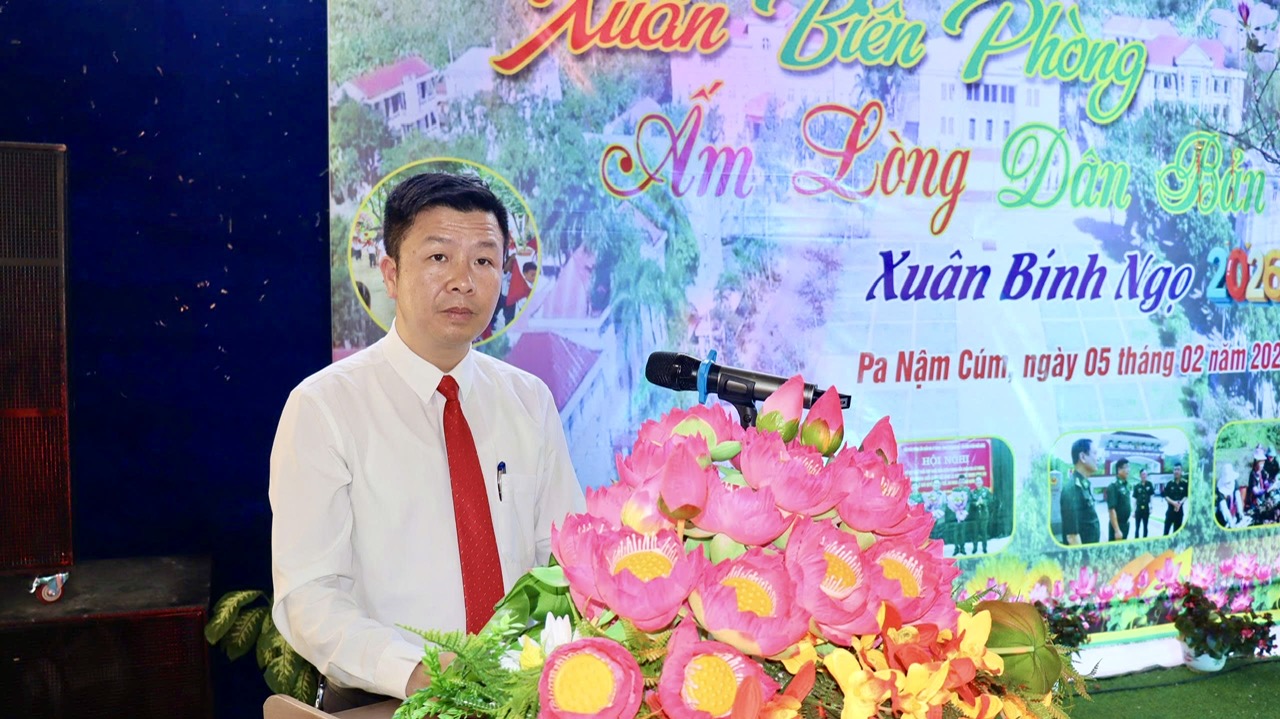 Phát biểu tại Chương trình, đồng chí Trịnh Khắc Tấn - Ủy viên Ban Thường vụ Đảng ủy, Phó Chủ tịch UBND xã ghi nhận và trân trọng cảm ơn sự quan tâm, hỗ trợ thiết thực của Đồn Biên phòng Cửa khẩu Ma Lù Thàng, các cơ quan, đơn vị, nhà hảo tâm đã đồng hành, đồng chí tin tưởng rằng thời gian tới, cấp ủy, chính quyền, lực lượng Biên phòng và Nhân dân bản Pa Nậm Cúm tiếp tục phát huy truyền thống đoàn kết, tin tưởng vào sự lãnh đạo của Đảng, chấp hành tốt chủ trương, đường lối của Đảng, chính sách, pháp luật của Nhà nước; tích cực lao động sản xuất, phát triển kinh tế, giảm nghèo bền vững; giữ gìn bản sắc văn hóa dân tộc; phối hợp chặt chẽ với lực lượng Biên phòng trong bảo vệ chủ quyền lãnh thổ, an ninh biên giới Quốc gia.
