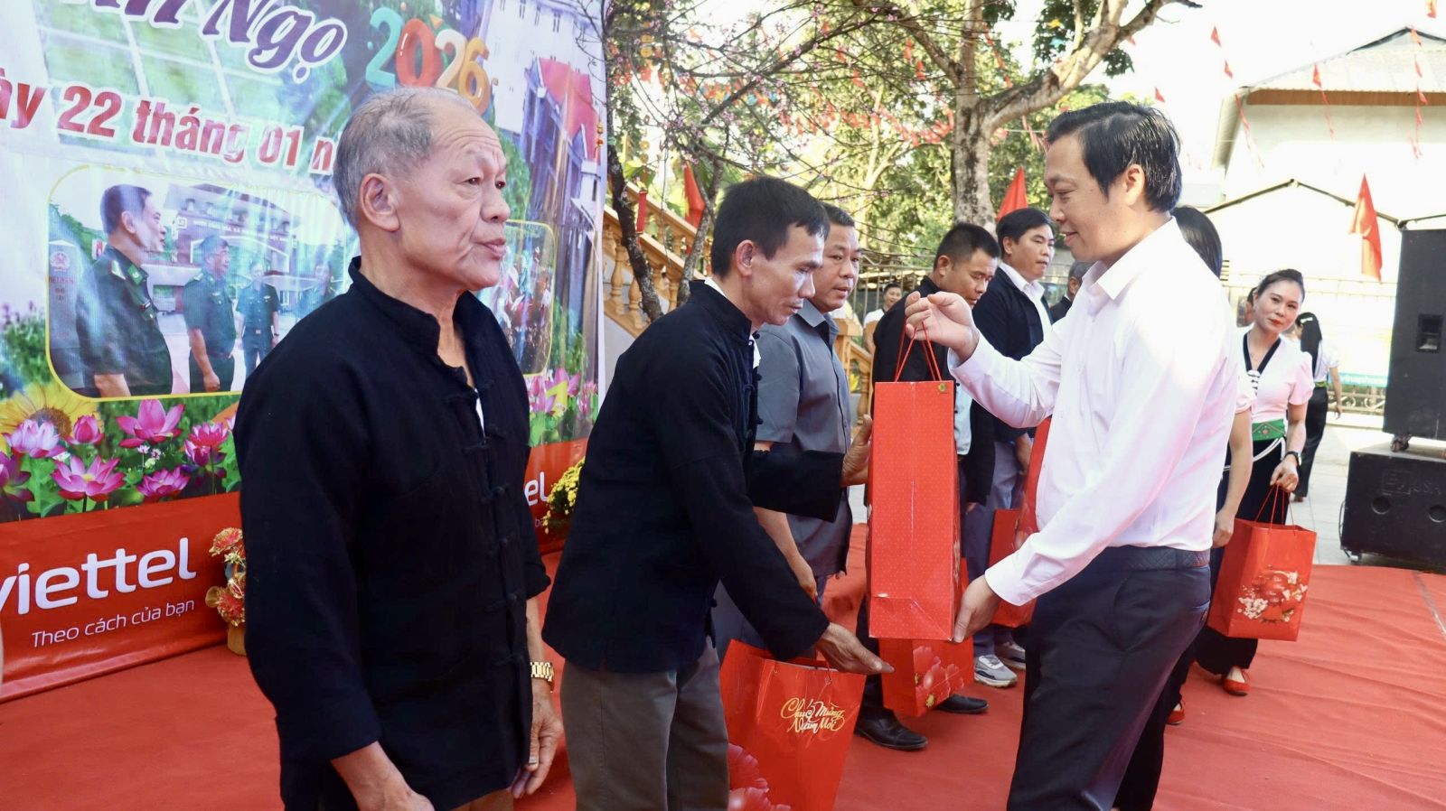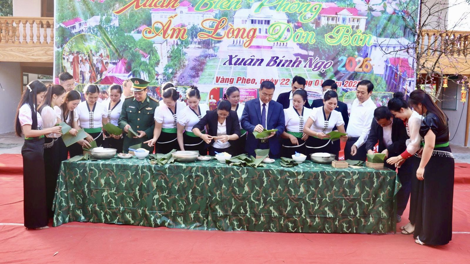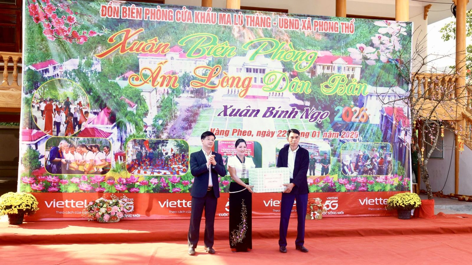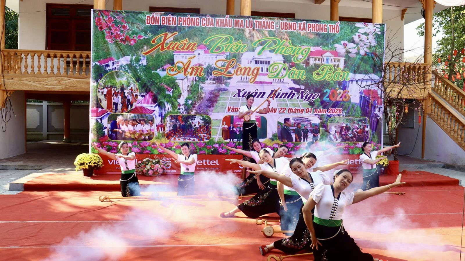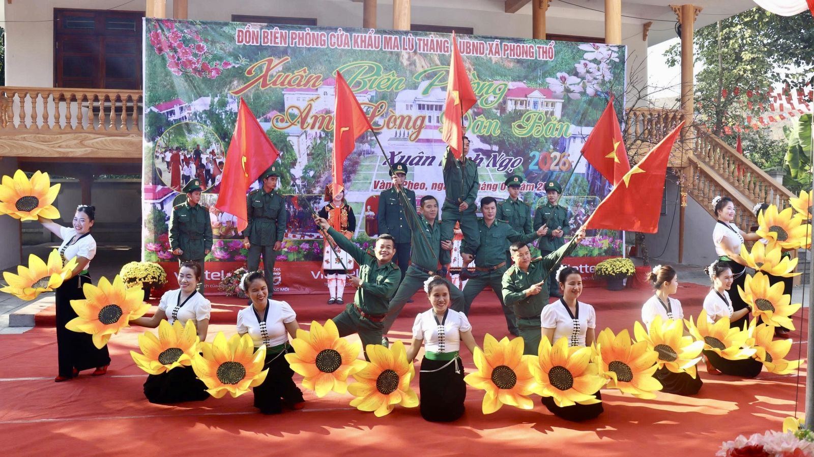 Ngày 22/1, tại Nhà văn hóa bản Vàng Pheo, UBND xã Phong Thổ phối hợp với Đồn Biên phòng Cửa khẩu Ma Lù Thàng tổ chức điểm Chương trình “Xuân Biên phòng ấm lòng dân bản” nhân dịp Tết Nguyên đán Bính Ngọ 2026. Dự và chỉ đạo có đồng chí Tống Thanh Bình - Ủy viên Ban Thường vụ Tỉnh ủy, Phó Chủ tịch Thường trực Ủy ban MTTQ Việt Nam tỉnh; đại diện lãnh đạo Sở Dân tộc và Tôn giáo, Ban Chỉ huy Bộ đội Biên phòng tỉnh; các đồng chí lãnh đạo Đảng ủy, HĐND, UBND, Ủy ban MTTQ xã Phong Thổ, đại diện lãnh đạo các xã: Khổng Lào, Sin Suối Hồ, Dào San, Sì Lở Lầu, các đơn vị đồng hành cùng đông đảo Nhân dân bản Vàng Pheo.
