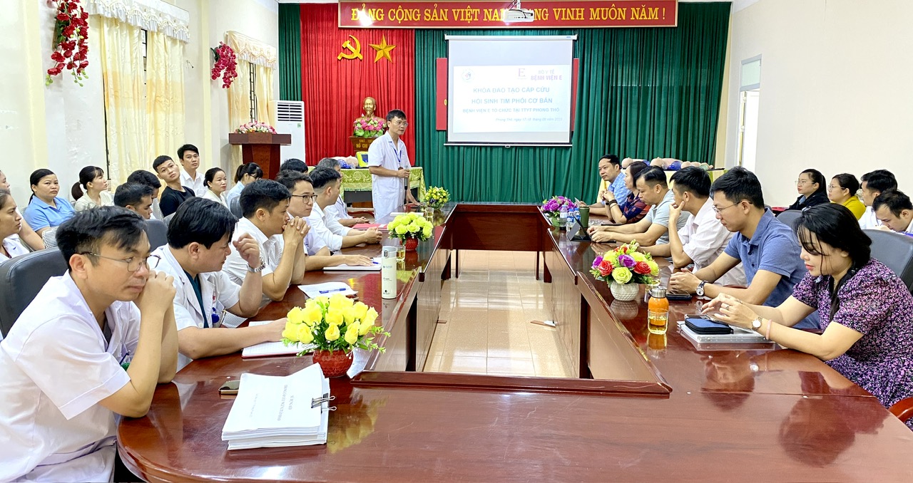 Trong 2 ngày (17-18/9), Đoàn công tác của Bệnh viện E do Thạc sỹ, Bác sỹ Đỗ Quốc Phong – Phó Trưởng khoa Hồi sức tích cực và Chống độc làm Trưởng đoàn đã tổ chức khóa đào tạo cấp cứu, hồi sinh tim phổi cơ bản theo tiêu chuẩn quốc tế AHA cho 24 học viên đến từ Trung tâm Y tế Phong Thổ, Trung tâm Y tế Sìn Hồ và Trung tâm Y tế Mường Tè.
