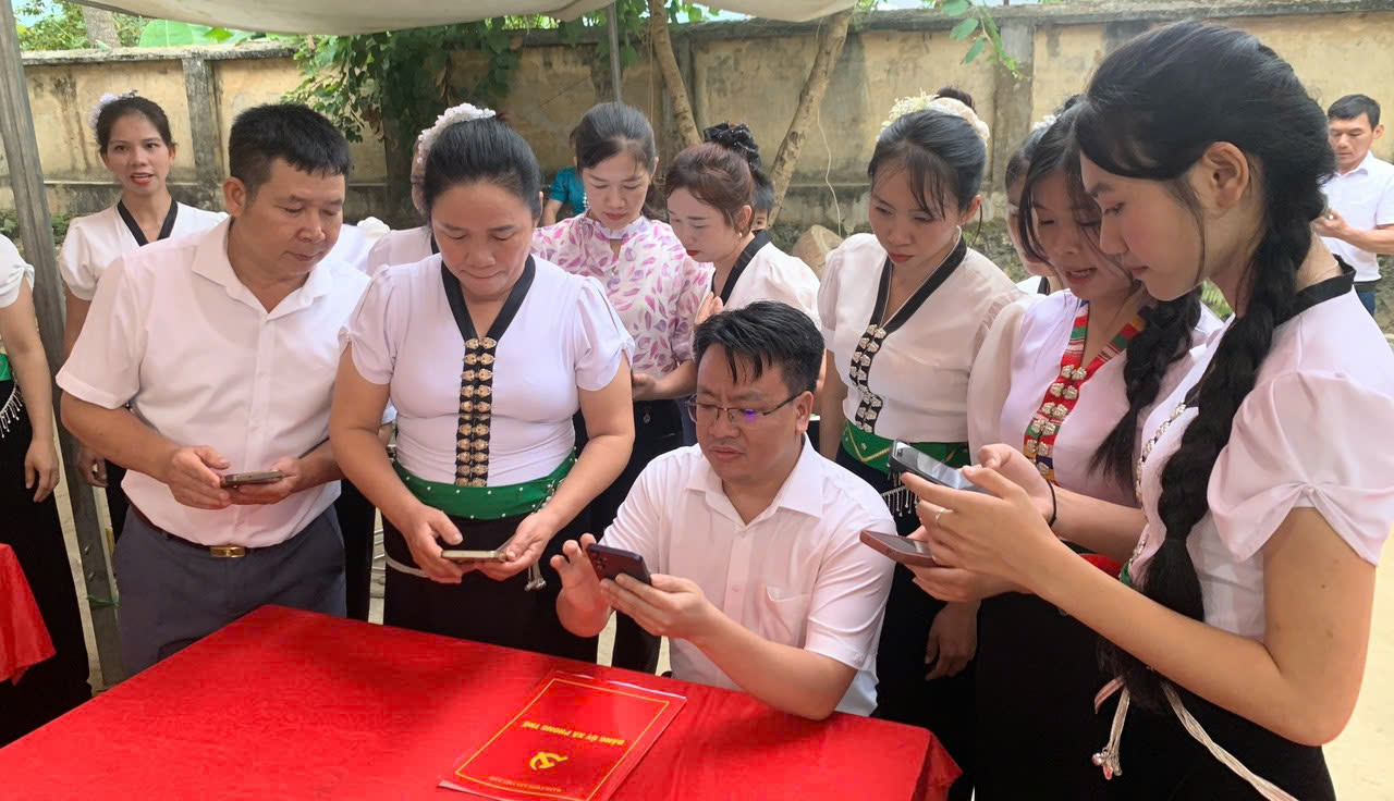Đẩy mạnh chuyển đổi số trong cộng đồng: Hướng dẫn người dân bản Huổi Én sử dụng VNeID để góp ý Dự thảo Văn kiện Đại hội XIV của Đảng