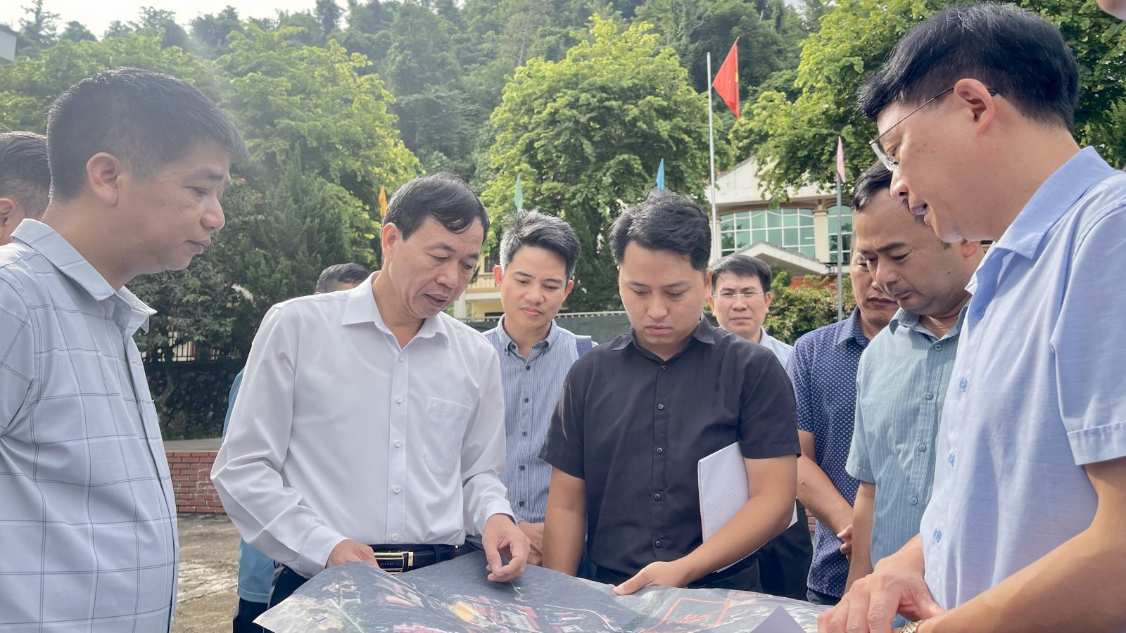 Đồng chí Chủ tịch UBND tỉnh Lê Văn Lương kiểm tra công tác chuẩn bị tổ chức Lễ khởi công Dự án đầu tư xây dựng Trường Phổ thông Nội trú liên cấp Tiểu học và THCS Phong Thổ