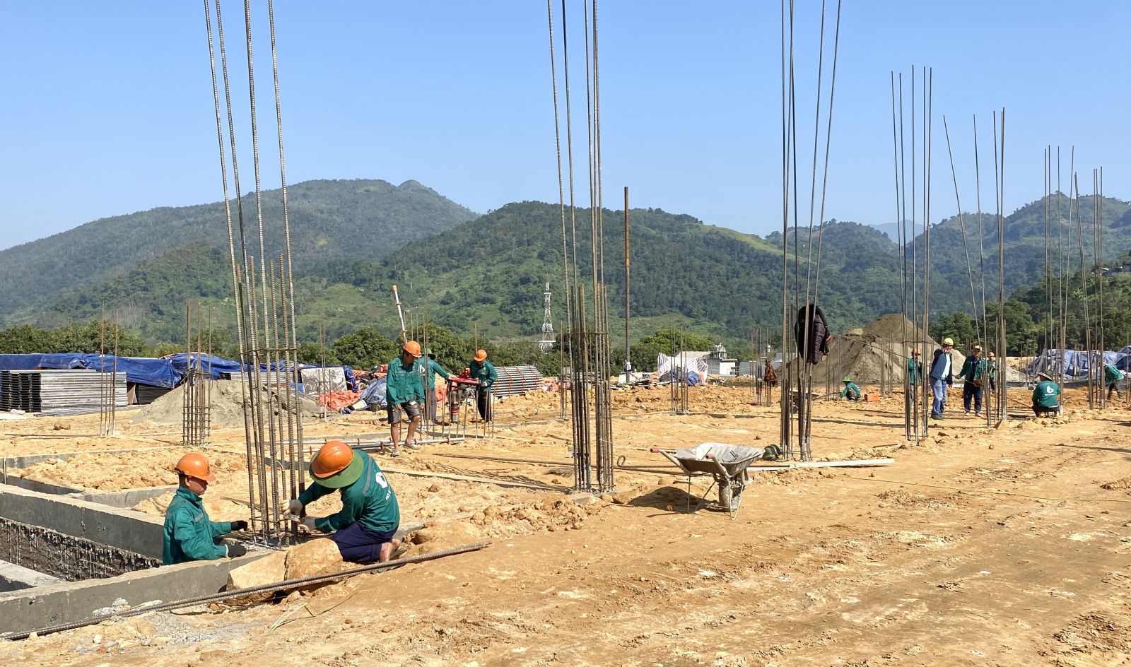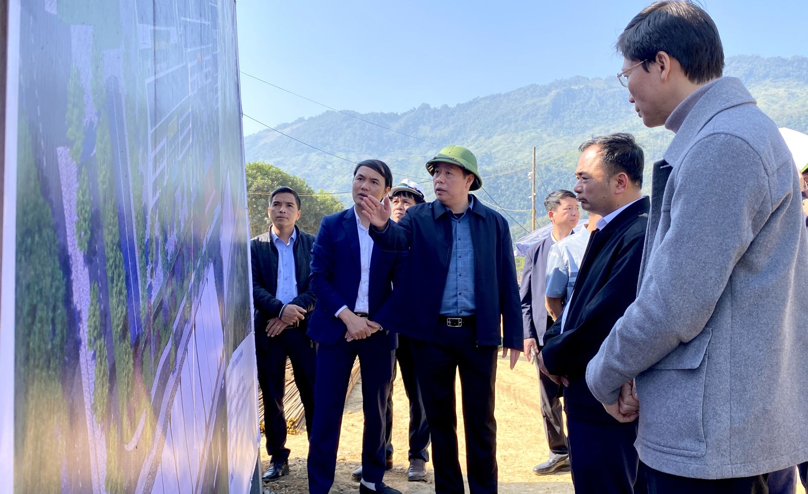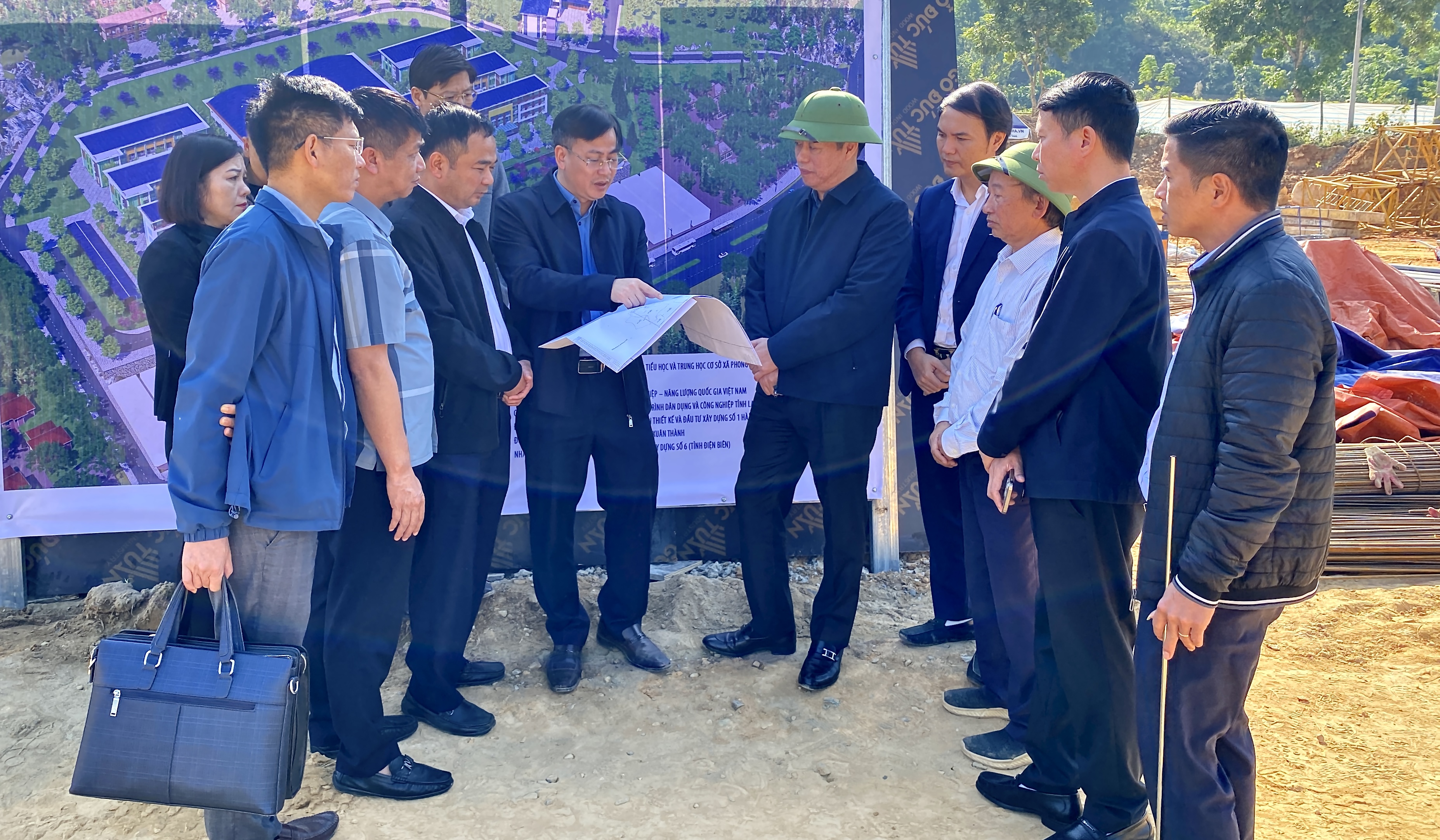 Đồng chí Hà Quang Trung - Phó Bí thư Tỉnh ủy, Chủ tịch UBND tỉnh kiểm tra tiến độ xây dựng công trình Trường Phổ thông nội trú liên cấp Tiểu học và THCS xã Phong Thổ
