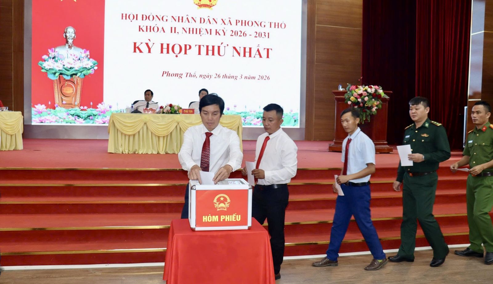 Ngày 26/3, Hội đồng nhân dân xã Phong Thổ tổ chức Kỳ họp thứ nhất HĐND xã khóa II, nhiệm kỳ 2026 – 2031. Tham dự kỳ họp có đồng chí Chang Phương Thảo – Phó Trưởng Ban pháp chế HĐND tỉnh, các đồng chí Thường trực Đảng ủy, UBND, Ủy ban MTTQ Việt nam xã; đại diện các ban, ngành, đoàn thể, cơ quan, đơn vị và các đại biểu HĐND xã khóa II. Các đồng chí Đinh Quang Tuấn - Ủy viên Ban Chấp hành Đảng bộ tỉnh, Bí thư Đảng ủy, Chủ tịch HĐND xã; Đào Đức Định - Ủy viên Ban Thường vụ Đảng ủy, Phó Chủ tịch HĐND xã đồng chủ trì Kỳ họp.