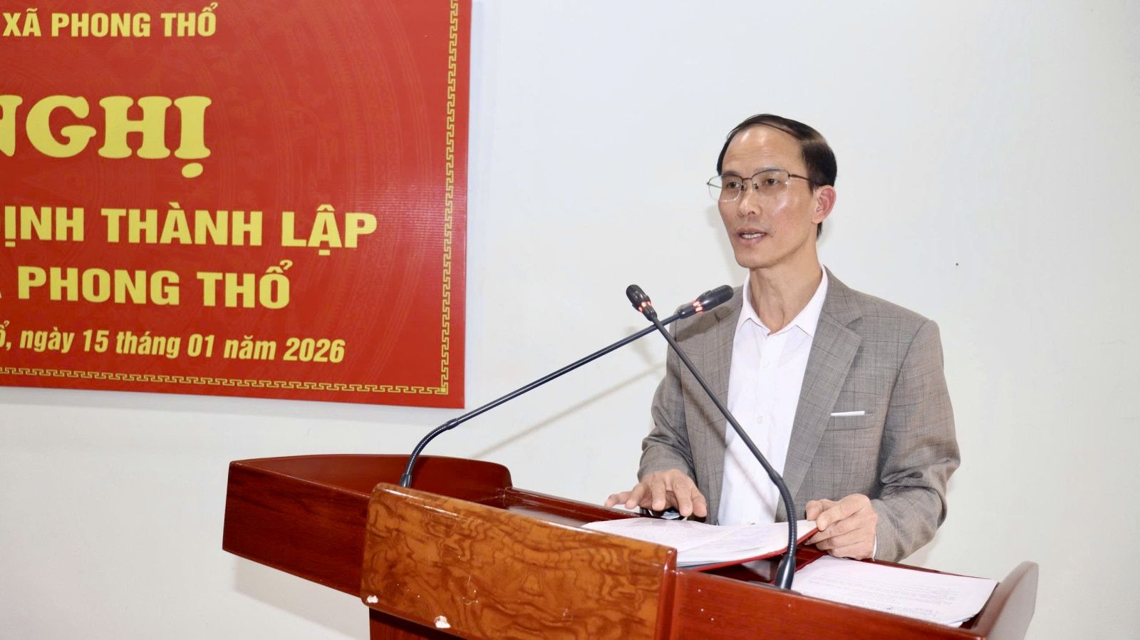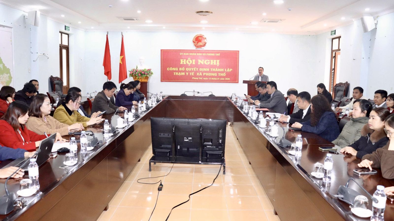 Tại hội nghị, đại diện lãnh đạo Phòng Văn hóa - Xã hội xã đã công bố Quyết định thành lập Trạm y tế xã Phong Thổ; đồng thời công bố các quyết định về công tác cán bộ của Trạm y tế. Theo Quyết định số 1199/QĐ-UBND, ngày 31/12/2025 của UBND xã Phong Thổ, Trạm y tế xã Phong Thổ thực hiện chức năng, nhiệm vụ theo Quy định tại thông tư số 43/2025/TT-BYT ngày 15/11/2025 của Bộ Y tế về hướng dẫn chức năng, nhiệm vụ, quyền hạn và cơ cấu tổ chức của Trạm y tế xã phường, đặc khu thuộc tỉnh, thành phố trực thuộc Trung ương và các quy định khác có liên quan.