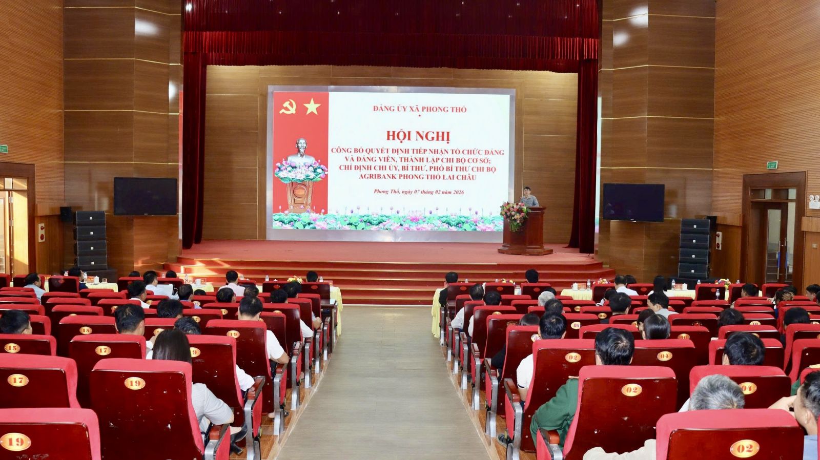 Tại Hội nghị, đại diện lãnh đạo Ban Xây dựng Đảng Đảng ủy xã đã công bố Quyết định về việc tiếp nhận tổ chức Đảng và đảng viên Chi bộ Agribank Phong Thổ trực thuộc Đảng ủy xã; Quyết định thành lập Chi bộ cơ sở Agribank Phong Thổ; Quyết định chỉ định Chi ủy, Bí thư, Phó Bí thư Chi bộ Agribank Phong Thổ. Theo các quyết định: Chi bộ Agribank Phong Thổ gồm 12 đảng viên, Chi ủy gồm 3 đảng viên, đồng chí Vũ Thị Long được chỉ định giữ chức vụ Bí thư Chi bộ, đ/c Đỗ Tuần Phong được chỉ định giữ chức vụ Phó Bí thư.