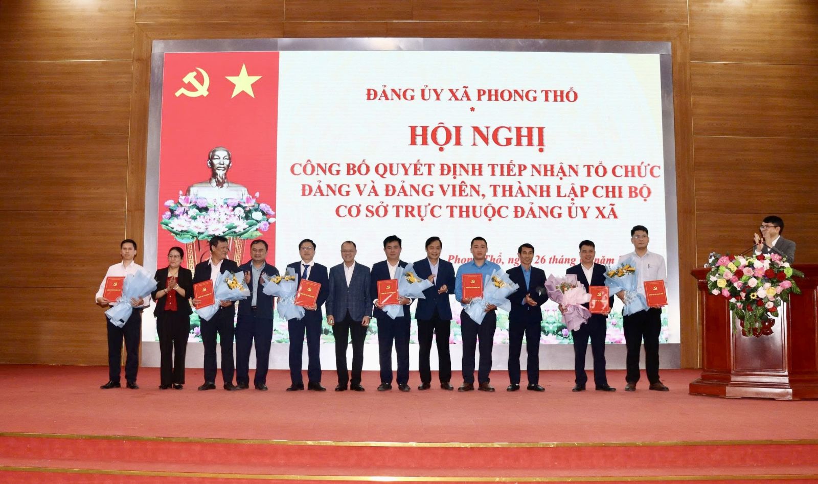 Tại Hội nghị, đại diện Ban xây dựng Đảng xã đã công bố Quyết định của Đảng ủy xã về việc tiếp nhận tổ chức đảng và đảng viên; Quyết định thành lập các chi bộ cơ sở trực thuộc Đảng ủy xã gồm Chi bộ cơ sở Đội quản lý Điện lực khu vực Phong Thổ, Chi bộ cơ sở Chi nhánh nước sạch Phong Thổ, Chi bộ cơ sở Phòng giao dịch Ngân hàng Chính sách xã hội Phong Thổ và Chi bộ cơ sở VNPT Phong Thổ; Quyết định chỉ định chi ủy, bí thư, phó bí thư chi bộ cơ sở. Việc tiếp nhận tổ chức đảng và đảng viên nhằm kiện toàn tổ chức cơ sở đảng, tăng cường sự lãnh đạo, chỉ đạo của Đảng trong thực hiện nhiệm vụ chính trị tại địa phương.