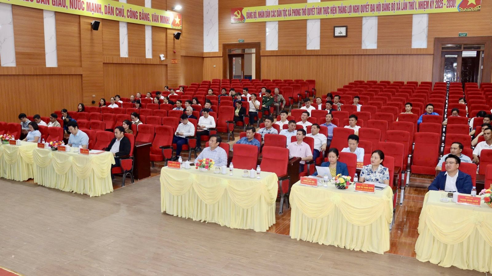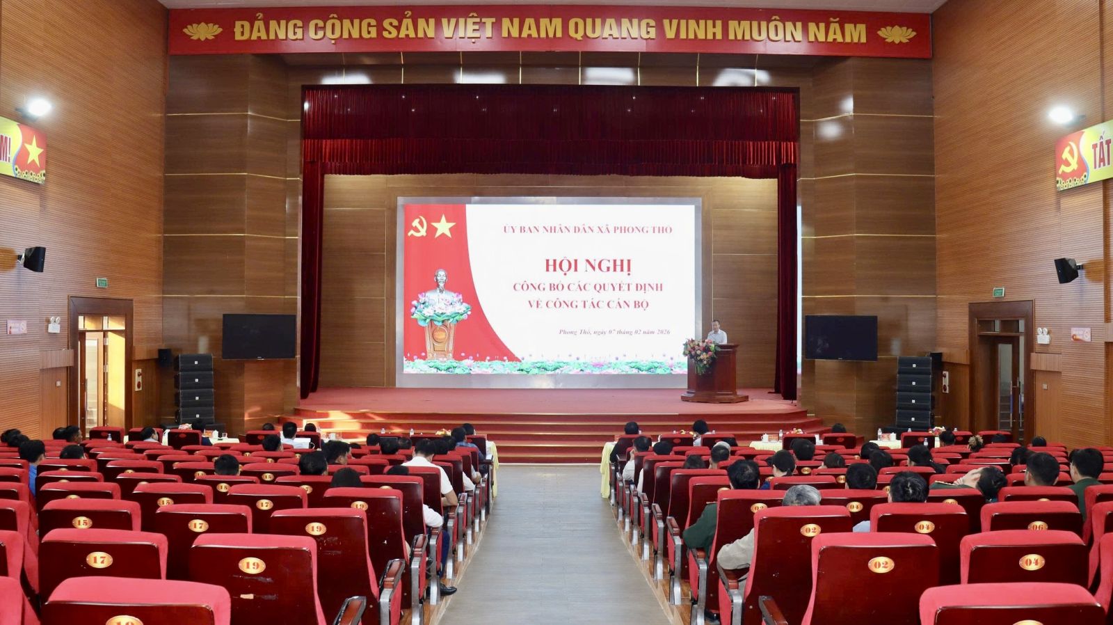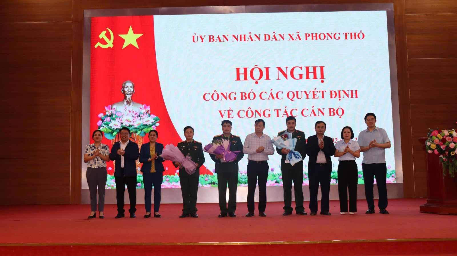 Tại Hội nghị, đại diện lãnh đạo Phòng Văn hóa xã hội đã công bố Quyết định của UBND tỉnh Lai Châu về việc miễn nhiệm các chức vụ Chỉ huy trưởng, Phó Chỉ huy trưởng, Chính trị viên phó, Trợ lý thuộc Ban Chỉ huy Quân sự (CHQS) cấp xã, nhằm thực hiện công tác kiện toàn, sắp xếp tổ chức bộ máy, đáp ứng yêu cầu nhiệm vụ quốc phòng – quân sự địa phương trong tình hình mới. Hội nghị cũng công bố Quyết định của Quân khu 2 về việc điều động, bổ nhiệm cán bộ. Việc điều động, bổ nhiệm cán bộ được thực hiện theo đúng trình tự, quy định của Đảng, Nhà nước và Quân đội.