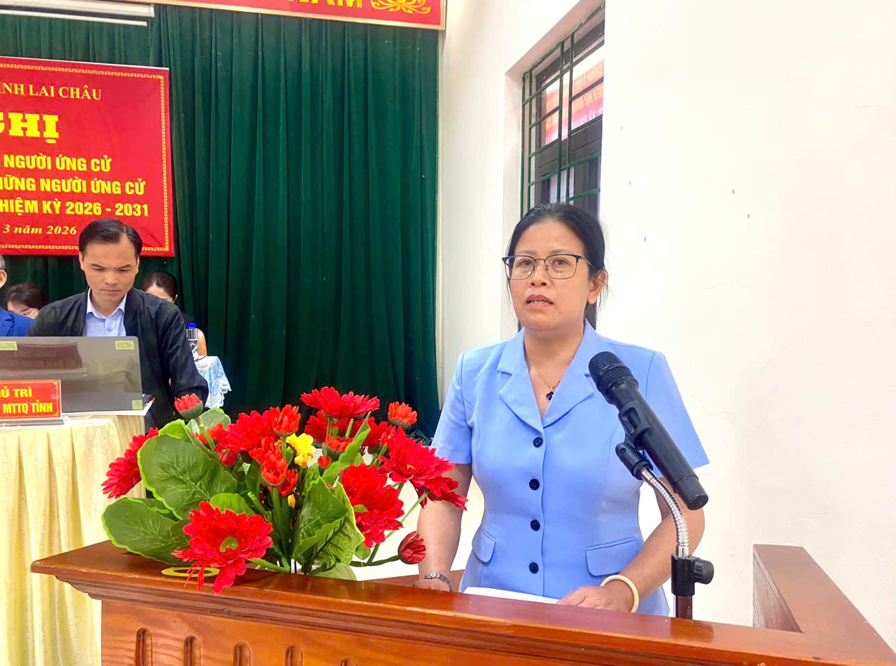 Tại hội nghị, đại diện Ban Thường trực Ủy ban MTTQ Việt Nam xã Phong Thổ đã công bố tiểu sử tóm tắt của các ứng cử viên đại biểu Quốc hội khóa XVI và đại biểu HĐND các cấp nhiệm kỳ 2026–2031. Theo đó, có 5 người ứng cử đại biểu Quốc hội khóa XVI, 8 người ứng cử đại biểu HĐND tỉnh Lai Châu và 5 người ứng cử đại biểu HĐND xã Phong Thổ nhiệm kỳ 2026–2031.