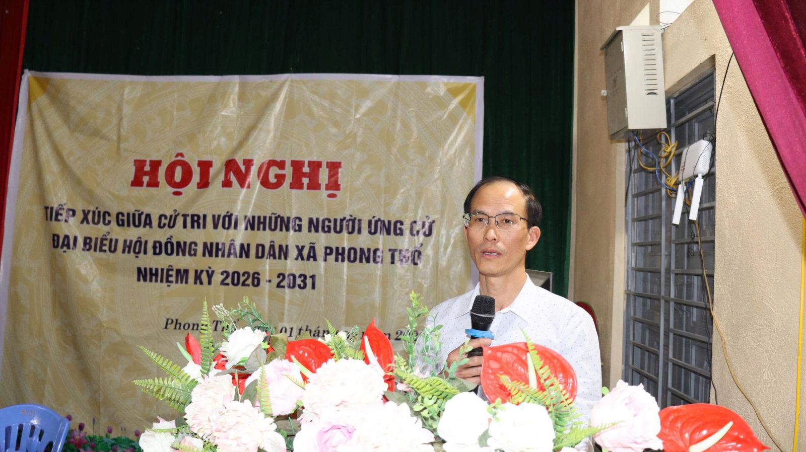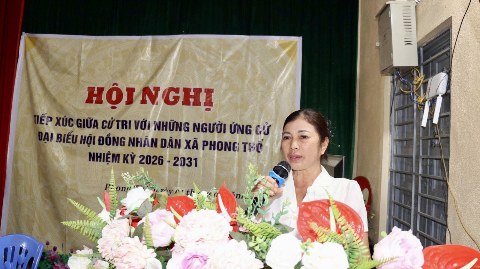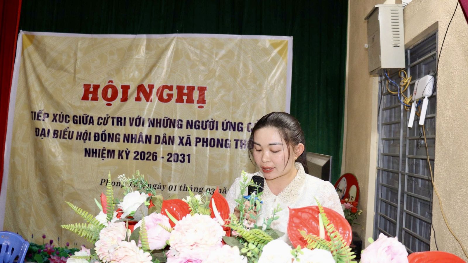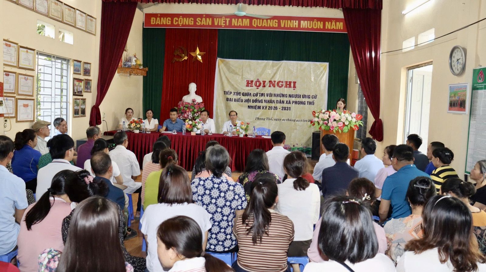 Tại hội nghị, đại diện Ủy ban MTTQ Việt Nam xã đã thông qua tiểu sử tóm tắt của các ứng cử viên đại biểu Hội đồng nhân dân xã Phong Thổ khóa II, nhiệm kỳ 2026–2031 gồm: Ông Đinh Quang Tuấn – Ủy viên Ban Chấp hành Đảng bộ tỉnh, Bí thư Đảng ủy, Chủ tịch HĐND xã; ông Phạm Ngọc Dương – Phó Giám đốc Tram Y tế xã, ông Nguyễn Đình Sơn – Viên chức Trạm Y tế xã bà Vàng Thị Lâm – Bí thư Chi bộ, Trưởng bản Nậm Cung; bà Lù Thị Thặm - Chi hội trưởng Chi hội Phụ nữ bản Nậm Cung, thực hiện việc tiếp xúc cử tri vận động bầu cử tại đơn vị bầu cử số 7 gồm: thôn Tây sơn, thôn Tây Nguyên, bản Nậm Cung và bản Nà Củng.