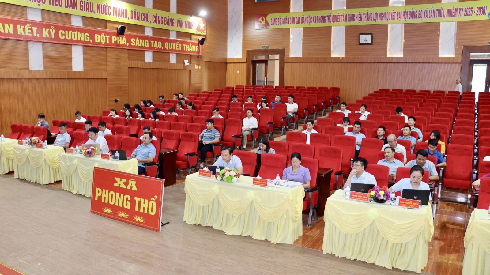 Sáng 13/4, Bộ Chính trị, Ban Bí thư Trung ương Đảng chủ trì tổ chức Hội nghị toàn quốc nghiên cứu, học tập, quán triệt và triển khai thực hiện Nghị quyết Hội nghị lần thứ hai Ban Chấp hành Trung ương Đảng khóa XIV. Hội nghị được tổ chức theo hình thức trực tiếp kết hợp trực tuyến kết nối từ điểm cầu Trung ương tới các tỉnh, thành phố và cơ sở trên cả nước. Đồng chí Tổng Bí thư, Chủ tịch nước Tô Lâm dự và phát biểu chỉ đạo Hội nghị. Tham dự Hội nghị tại điểm cầu xã Phong Thổ có đồng chí Đinh Quang Tuấn, Ủy viên Ban Chấp hành Đảng bộ tỉnh, Bí thư Đảng ủy, Chủ tịch HĐND xã; các đồng chí ủy viên Ban chấp hành Đảng bộ xã; lãnh đạo các cơ quan, phòng, ban, đơn vị xã, các tổ chức đảng trực thuộc Đảng ủy xã…