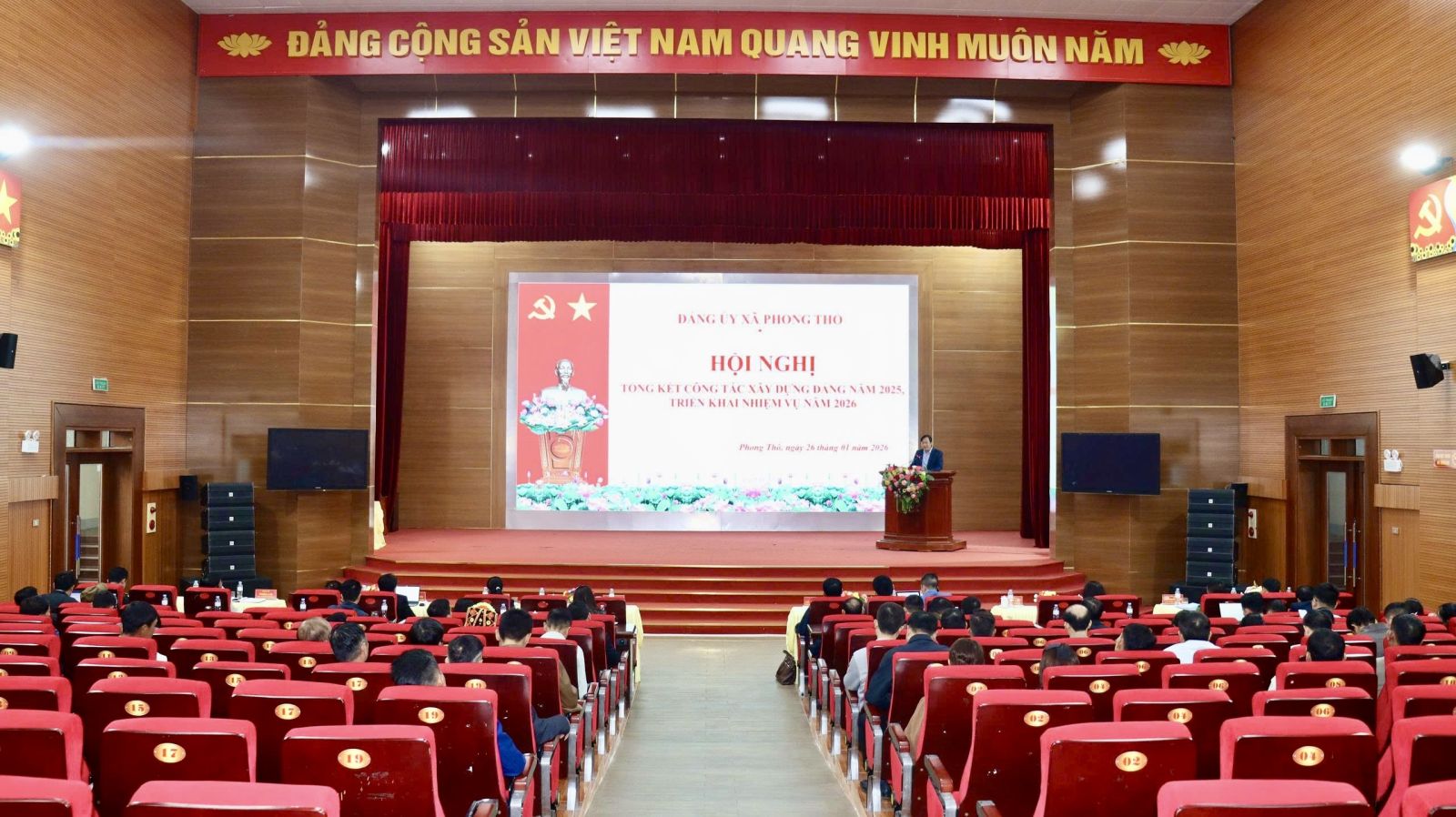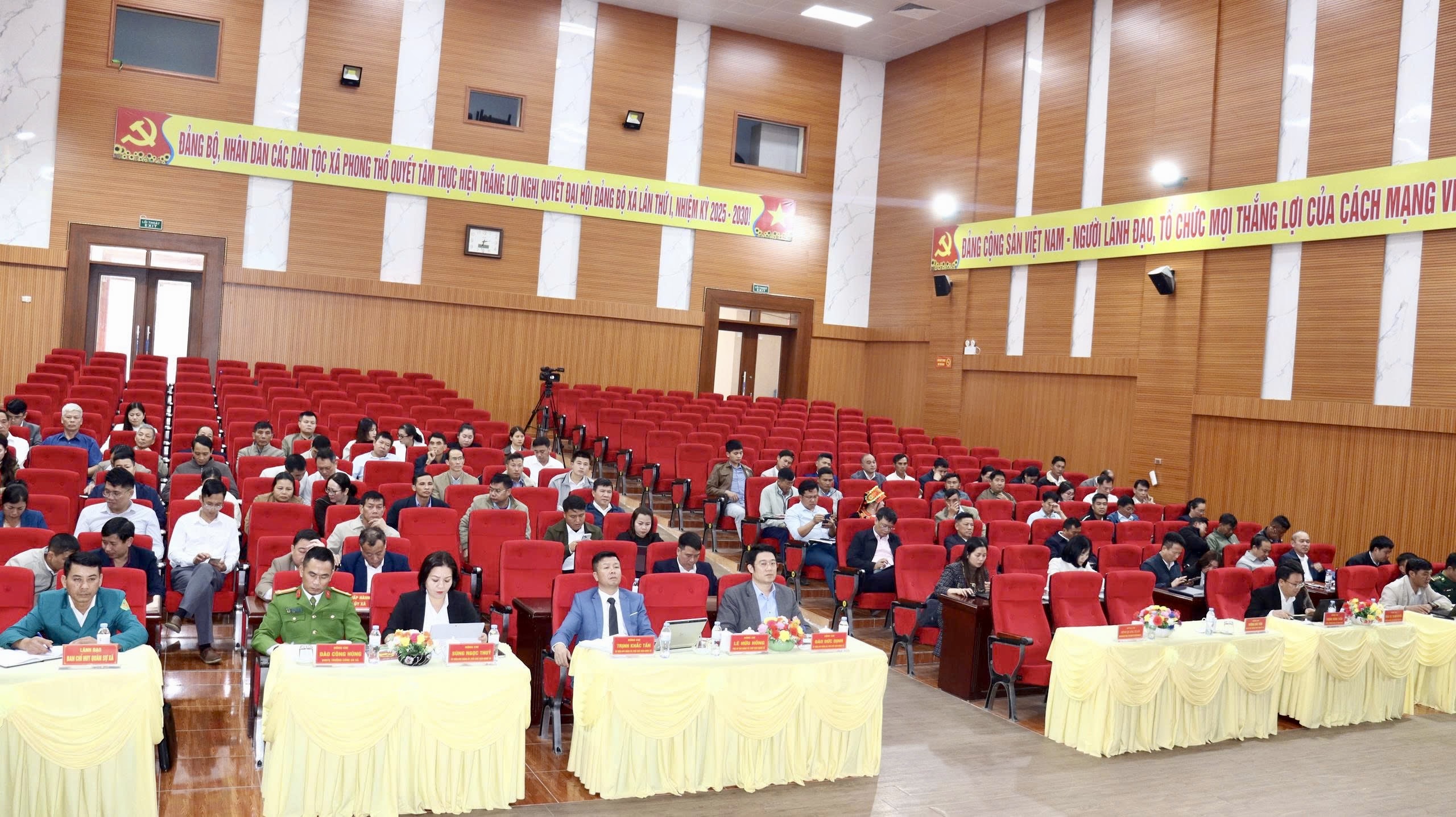 Tại Hội nghị, các đại biểu đã được xem phóng sự nêu bật những kết quả đạt được trong công tác xây dựng Đảng, công tác chính quyền, Mặt trận Tổ quốc và các đoàn thể chính trị – xã hội năm 2025, chỉ tiêu, nhiệm vụ năm 2026. Trong năm 2025, Đảng ủy xã Phong Thổ đã tập trung lãnh, chỉ đạo triển khai đồng bộ công tác sắp xếp tổ chức bộ máy theo tinh thần Nghị quyết số 18-NQ/TW, bảo đảm bộ máy sau sắp xếp hoạt động thông suốt, hiệu lực, hiệu quả. Toàn xã hiện có 13 tổ chức cơ sở đảng, 61 chi bộ trực thuộc Đảng ủy xã và 16 chi bộ trực thuộc Đảng ủy cơ sở với 1.346 đảng viên. 100% tổ chức đảng hoàn thành nhiệm vụ trở lên, trong đó 98,62% tổ chức đảng hoàn thành tốt nhiệm vụ trở lên; 98,76% đảng viên hoàn thành tốt nhiệm vụ trở lên; trong năm đã kết nạp 43 đảng viên mới, vượt chỉ tiêu, kế hoạch đề ra; tổ chức 514 hội nghị học tập, quán triệt nghị quyết, với 12.673 lượt đại biểu, trong đó tỷ lệ cán bộ, đảng viên tham dự đạt trên 98%; chỉ đạo tổ chức thành công Đại hội các chi bộ và Đại hội đại biểu Đảng bộ xã Phong Thổ lần thứ I, nhiệm kỳ 2025-2030. Việc triển khai Nghị quyết số 15-NQ/TU của Tỉnh ủy về xóa bỏ hủ tục, phong tục tập quán lạc hậu đạt kết quả tích cực. Công tác xây dựng Đảng, xây dựng hệ thống chính trị được đẩy mạnh. Năng lực lãnh đạo, sức chiến đấu của tổ chức cơ sở đảng được nâng lên. MTTQ và các đoàn thể chính trị - xã hội đã phát huy vai trò trong tuyên truyền, vận động các tầng lớp nhân dân xây dựng khối đại đoàn kết các dân tộc, thực hiện tốt chủ trương, đường lối của Đảng; chính sách, pháp luật của Nhà nước. Đẩy mạnh các phong trào thi đua yêu nước, xây dựng đời sống văn hóa, giữ vững ổn định chính trị, tư tưởng và trật tự an toàn xã hội trên địa bàn...