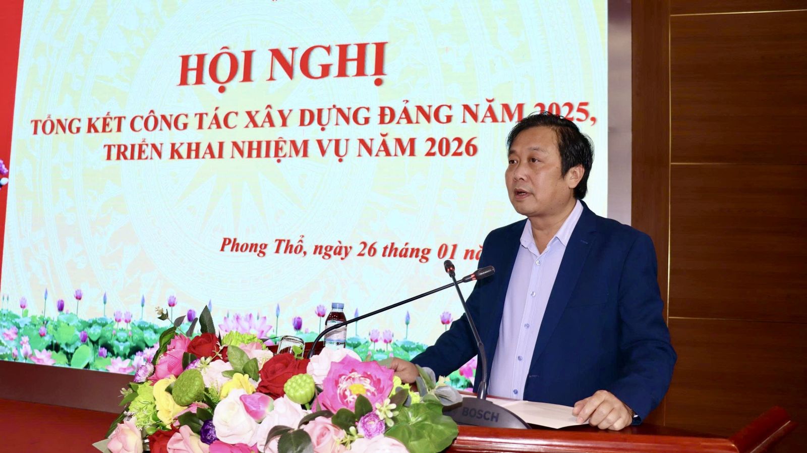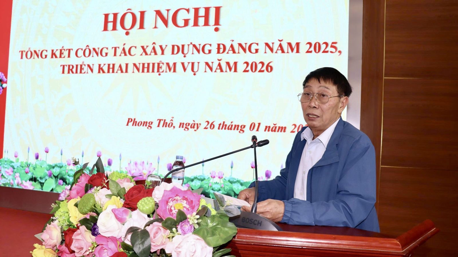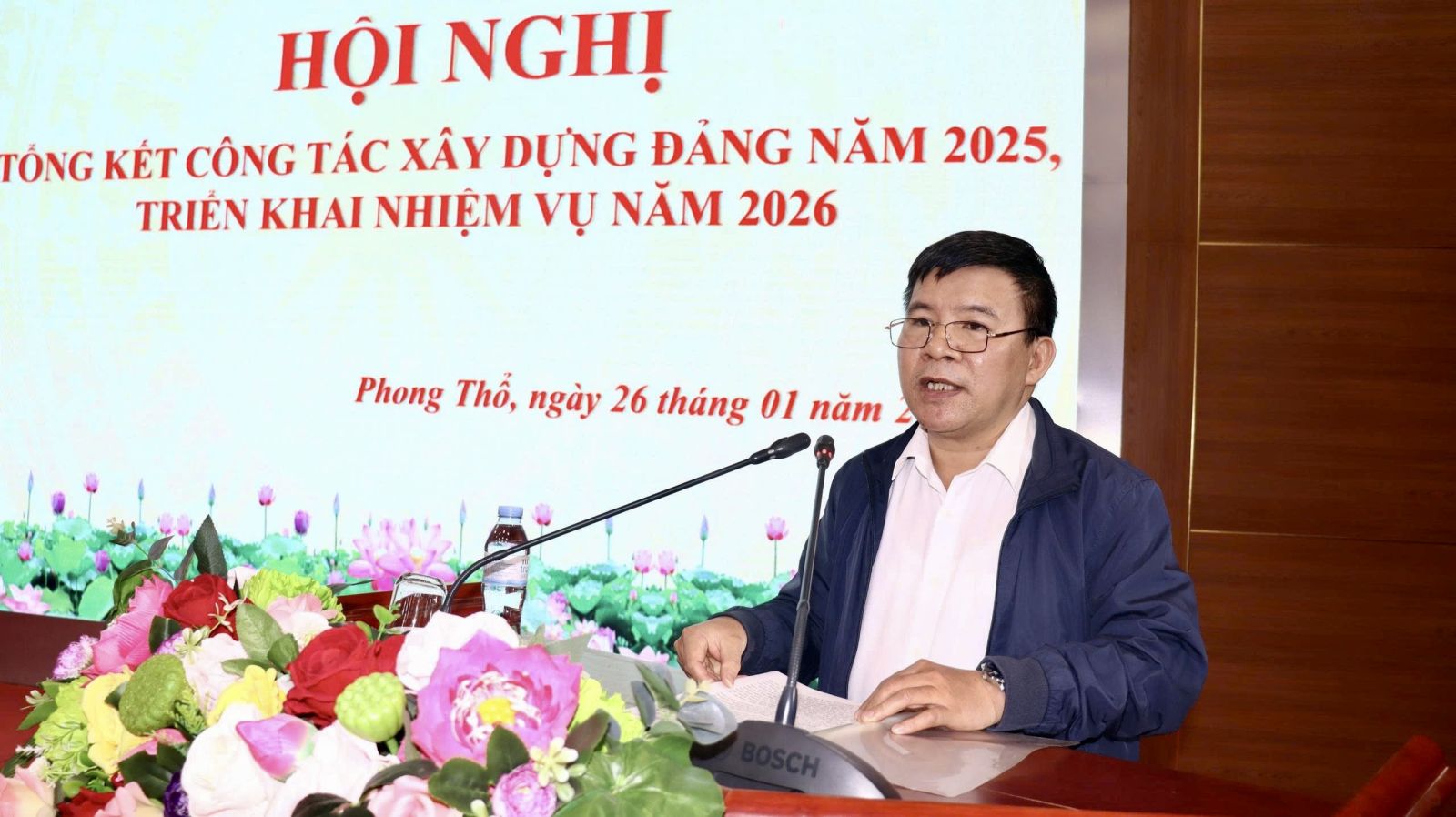 Chiều 26/1, Đảng ủy xã Phong Thổ tổ chức Hội nghị tổng kết công tác xây dựng Đảng năm 2025, triển khai nhiệm vụ năm 2026. Các đồng chí: Đinh Quang Tuấn - Ủy viên Ban Chấp hành Đảng bộ tỉnh, Bí thư Đảng ủy, Chủ tịch HĐND xã; Vương Đào Tiên - Phó Bí thư Thường trực Đảng ủy xã; Lê Hữu Hồng - Phó Bí thư Đảng ủy, Chủ tịch UBND xã đồng chủ trì Hội nghị