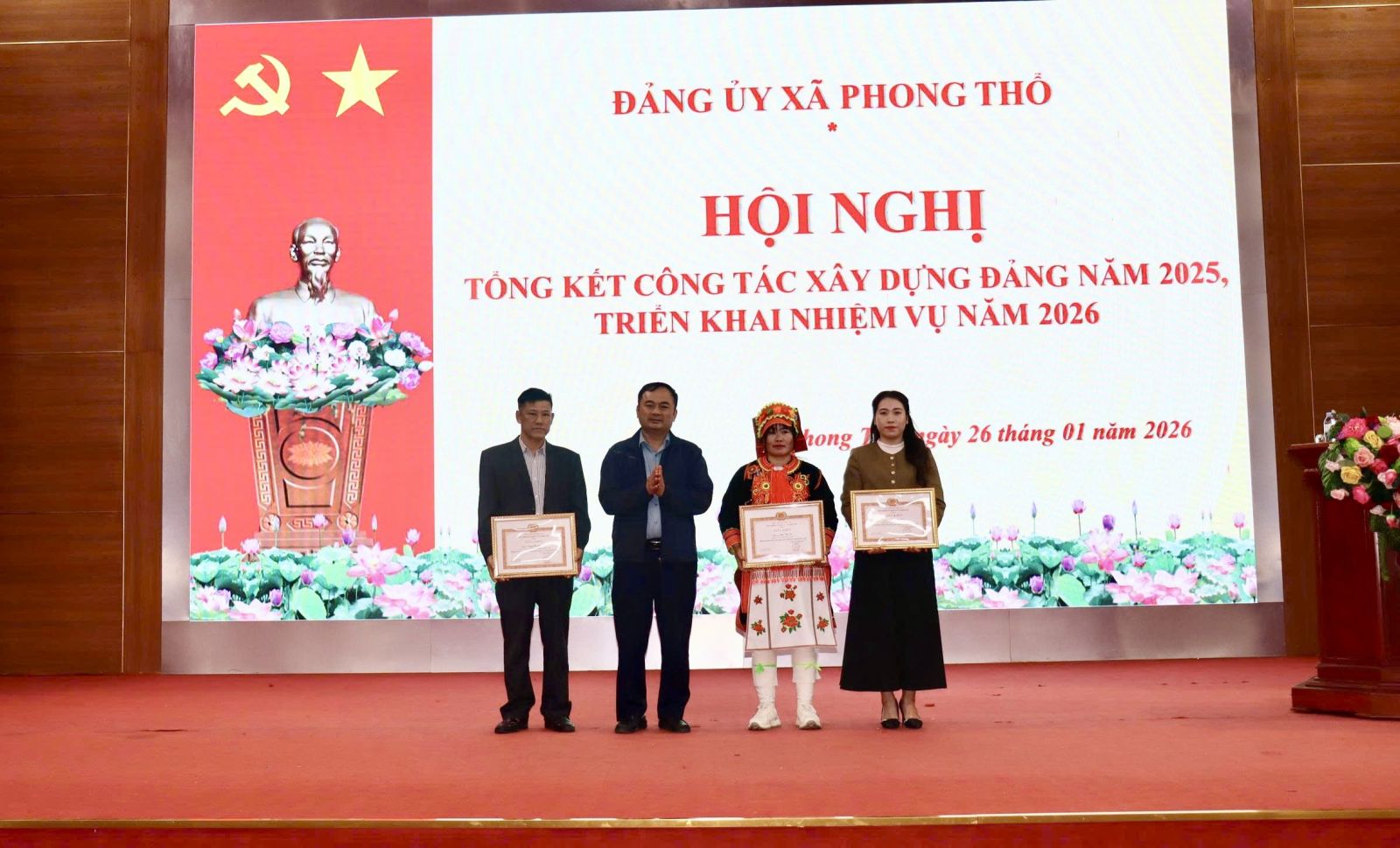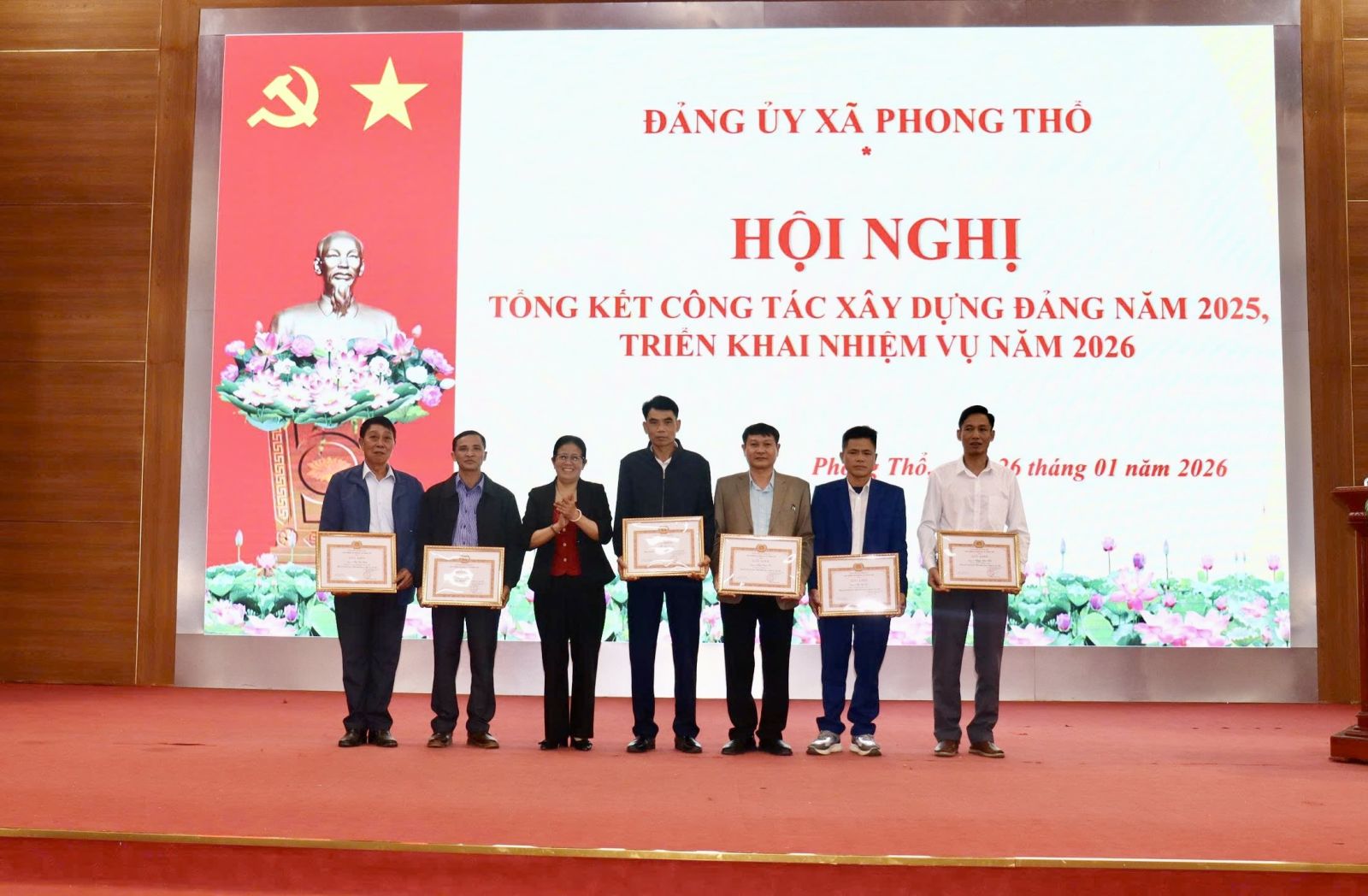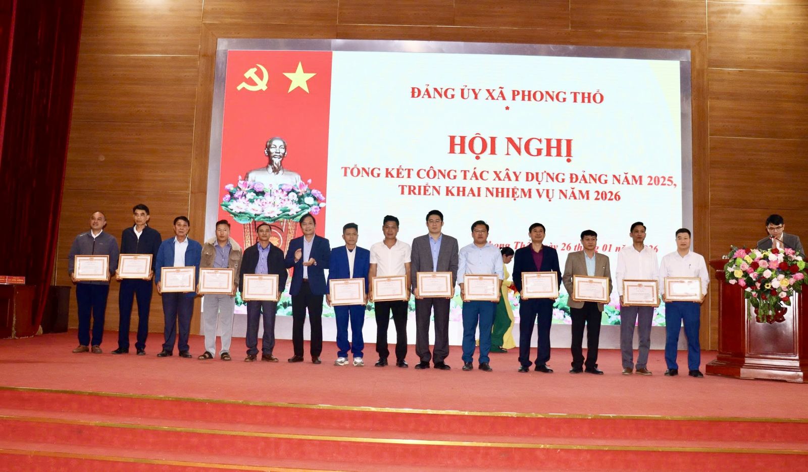 Nhân dịp này, Ban Thường vụ Đảng ủy xã Phong Thổ đã tặng Giấy khen cho 13 tổ chức đảng, 127 đảng viên hoàn thành xuất sắc nhiệm vụ năm 2025; tặng Giấy khen cho 03 đảng viên đạt tiêu chuẩn "Hoàn thành xuất sắc nhiệm vụ" 5 năm liền (2021-2025).