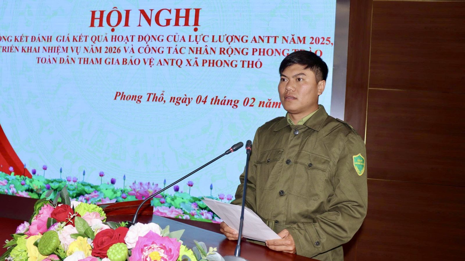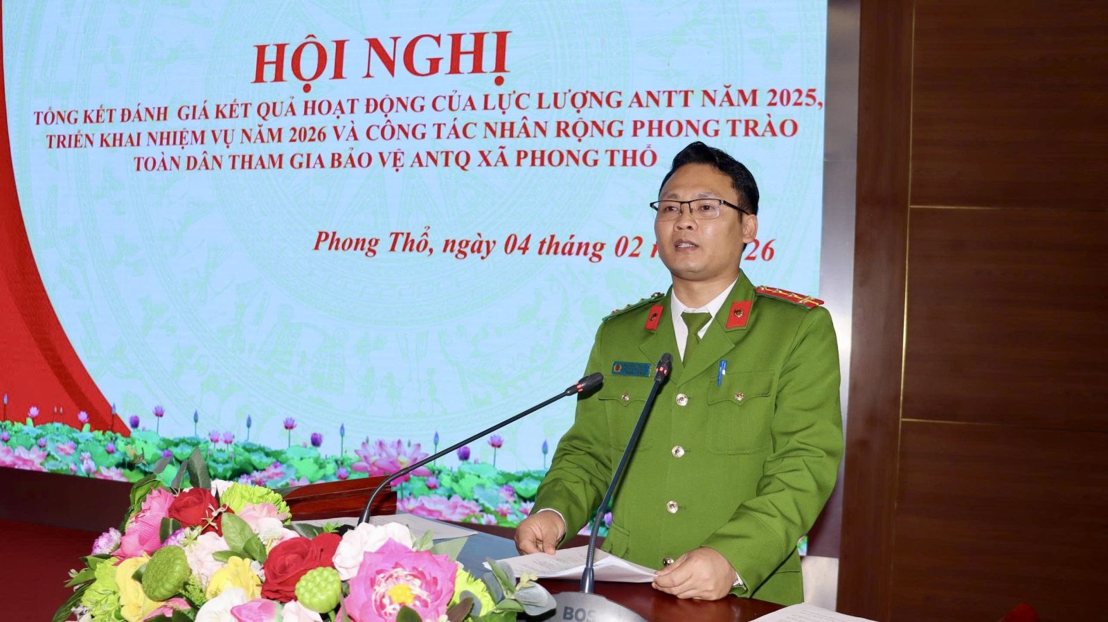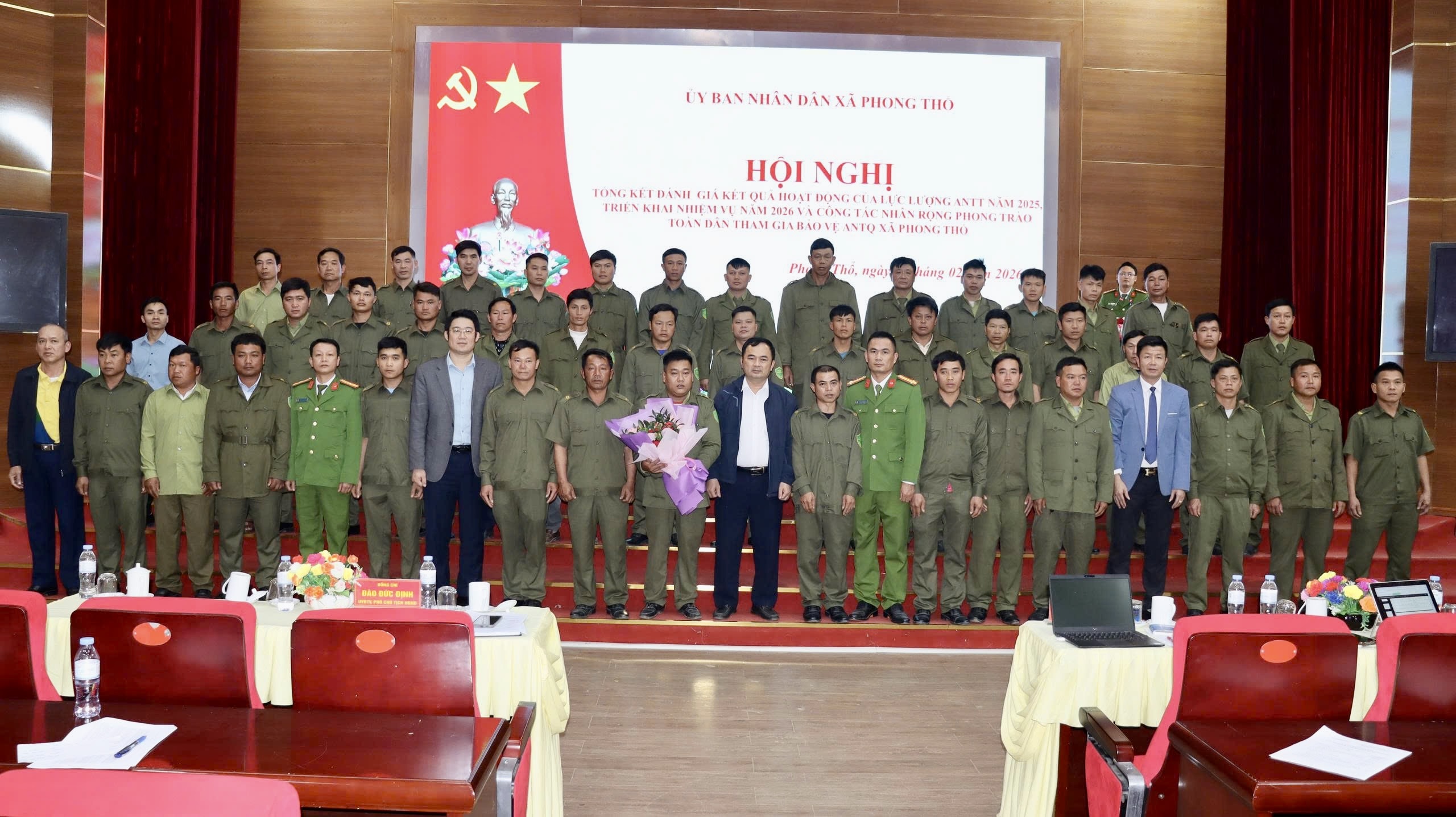 Chiều 4/2, UBND xã Phong Thổ tổ chức Hội nghị tổng kết đánh giá kết quả hoạt động của lực lượng An ninh trật tự (ANTT) năm 2025; triển khai nhiệm vụ năm 2026 và công tác nhân rộng phong trào toàn dân tham gia bảo vệ an ninh Tổ quốc. Tham dự Hội nghị có đồng chí Lê Hữu Hồng - Phó Bí thư Đảng ủy, Chủ tịch UBND xã; đồng chí Đào Đức Định - Ủy viên Ban Thường vụ Đảng ủy, Phó Chủ tịch HĐND xã; đồng chí Trịnh Khắc Tấn - Ủy viên Ban Thường vụ Đảng ủy, Phó Chủ tịch UBND xã; đại diện các ban, ngành, đoàn thể, cùng lực lượng Công an xã, lực lượng tham gia bảo vệ ANTT ở cơ sở trên địa bàn.
