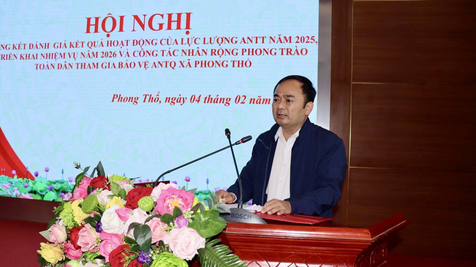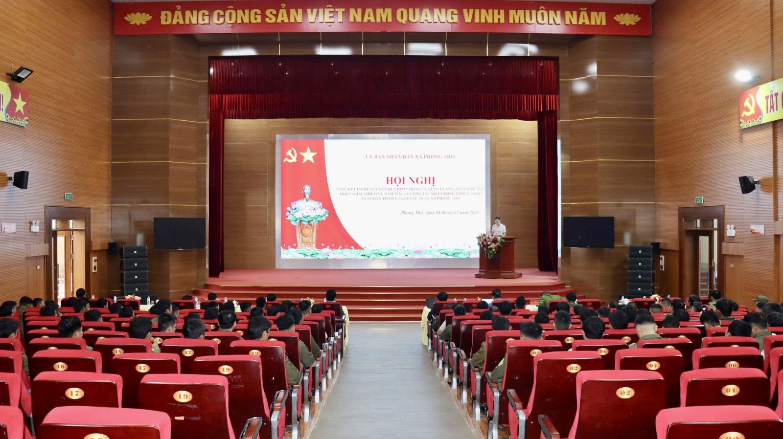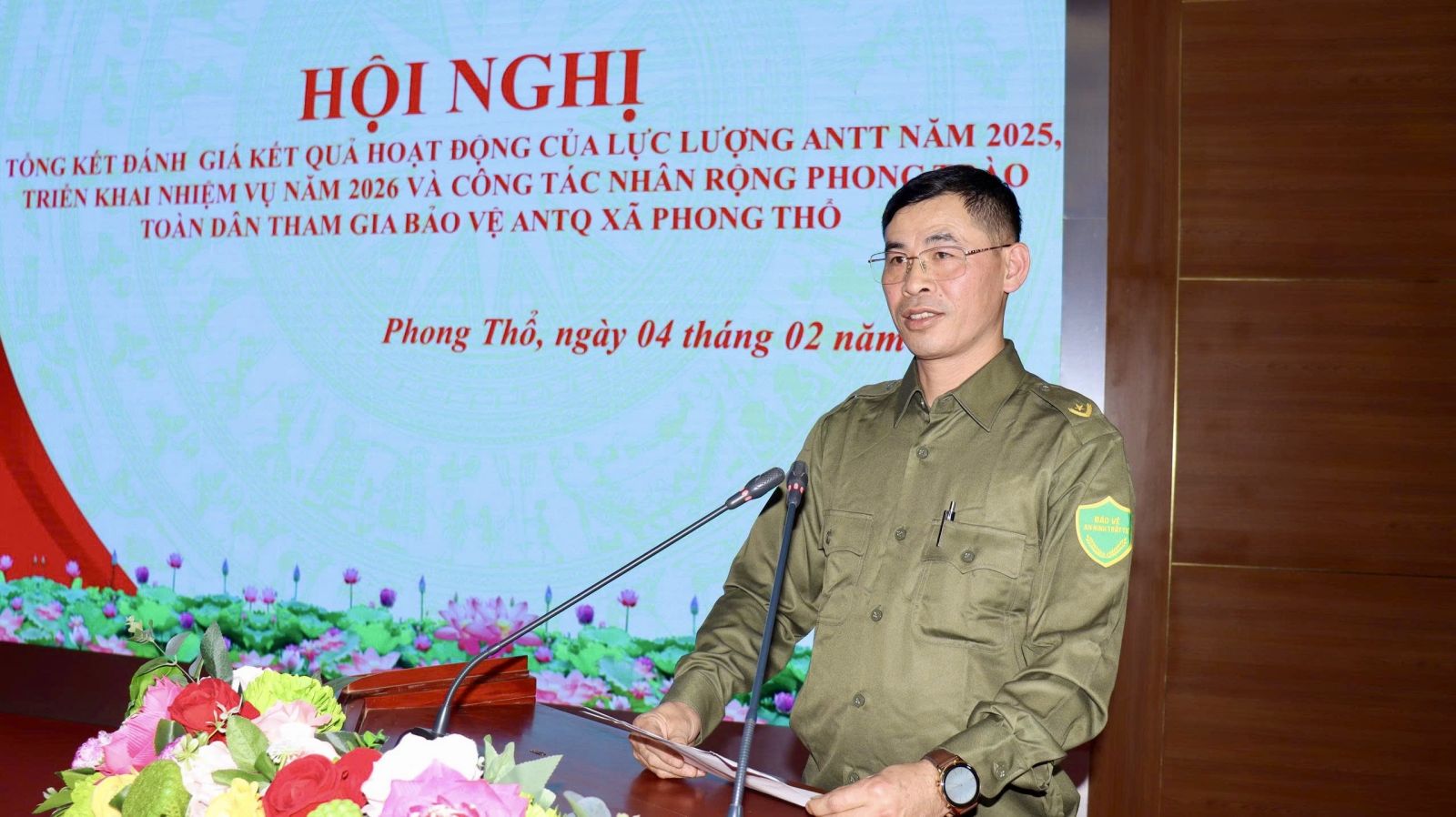 Chiều 4/2, UBND xã Phong Thổ tổ chức Hội nghị tổng kết đánh giá kết quả hoạt động của lực lượng An ninh trật tự (ANTT) năm 2025; triển khai nhiệm vụ năm 2026 và công tác nhân rộng phong trào toàn dân tham gia bảo vệ an ninh Tổ quốc. Tham dự Hội nghị có đồng chí Lê Hữu Hồng - Phó Bí thư Đảng ủy, Chủ tịch UBND xã; đồng chí Đào Đức Định - Ủy viên Ban Thường vụ Đảng ủy, Phó Chủ tịch HĐND xã; đồng chí Trịnh Khắc Tấn - Ủy viên Ban Thường vụ Đảng ủy, Phó Chủ tịch UBND xã; đại diện các ban, ngành, đoàn thể, cùng lực lượng Công an xã, lực lượng tham gia bảo vệ ANTT ở cơ sở trên địa bàn.