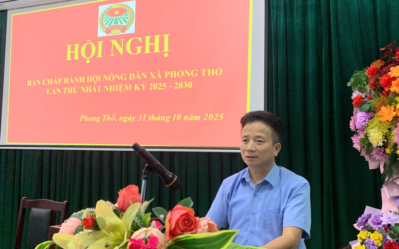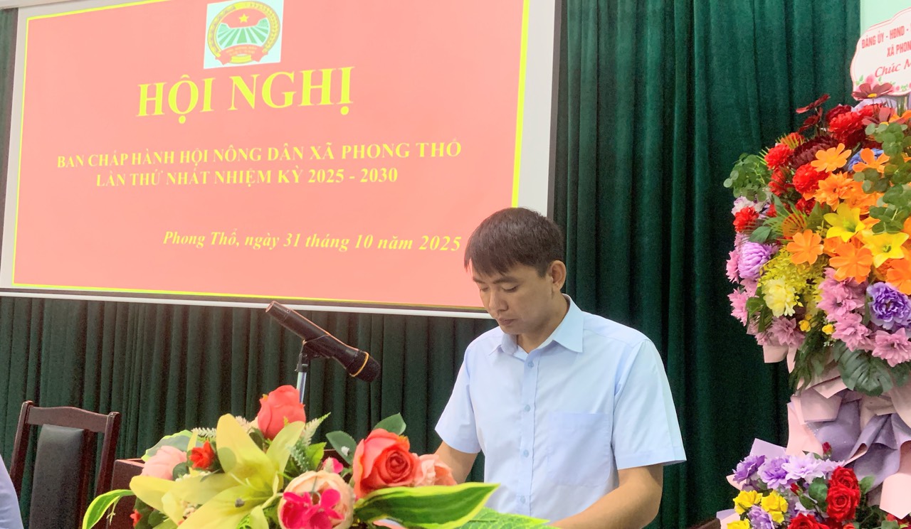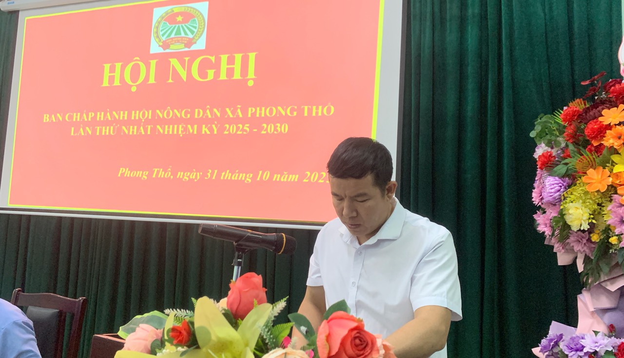 Chiều ngày 31/10/2025, Hội Nông dân xã Phong Thổ tổ chức Hội nghị Ban Chấp hành lần thứ I, nhiệm kỳ 2025–2030 nhằm đánh giá kết quả công tác Hội và phong trào nông dân nhiệm kỳ qua, đồng thời triển khai các nhiệm vụ trọng tâm của nhiệm kỳ mới. Dự và chỉ đạo hội nghị có đồng chí Nguyễn Đức Hội – Chủ tịch Hội Nông dân xã Phong Thổ; cùng các đồng chí đại diện lãnh đạo Ủy ban MTTQ Việt Nam xã, Chi hội trưởng Hội Nông dân các thôn, bản, tổ dân phố trên địa bàn.