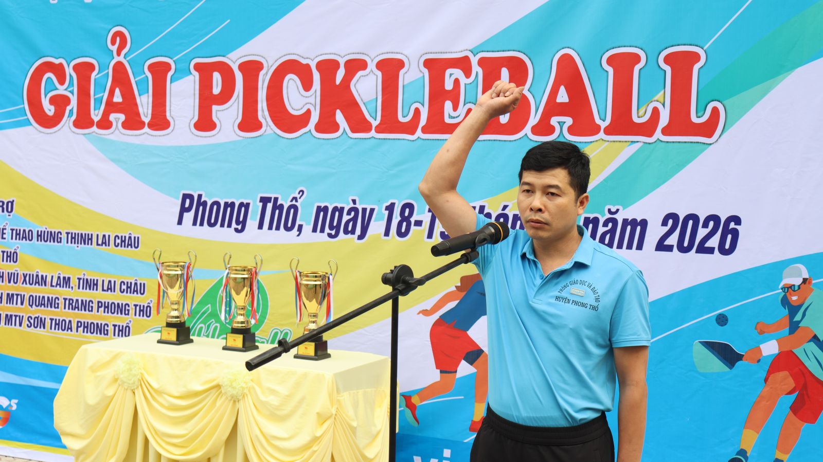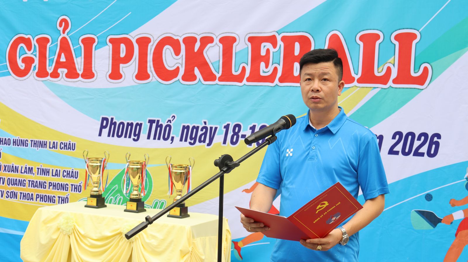Thực hiện Kế hoạch của UBND xã Phong Thổ về tổ chức Đại hội Thể dục thể thao xã Phong Thổ lần thứ I, năm 2026. Sáng 18/4, UBND xã Phong Thổ tổ chức Khai mạc giải Pickleball trong khuôn khổ Đại hội TDTT xã Phong Thổ lần thứ I năm 2026. Dự có đồng chí Đinh Quang Tuấn - Ủy viên Ban Chấp hành Đảng bộ tỉnh, Bí thư Đảng ủy, Chủ tịch HĐND xã; đồng chí Lê Hữu Hồng – Phó Bí thư Đảng ủy, Chủ tịch UBND xã; các đồng chí trong Ban Tổ chức; đại diện lãnh đạo các phòng, ban, cơ quan, đơn vị; các công ty, doanh nghiệp, nhà tài trợ và các đoàn vận động viên tham gia giải đấu.