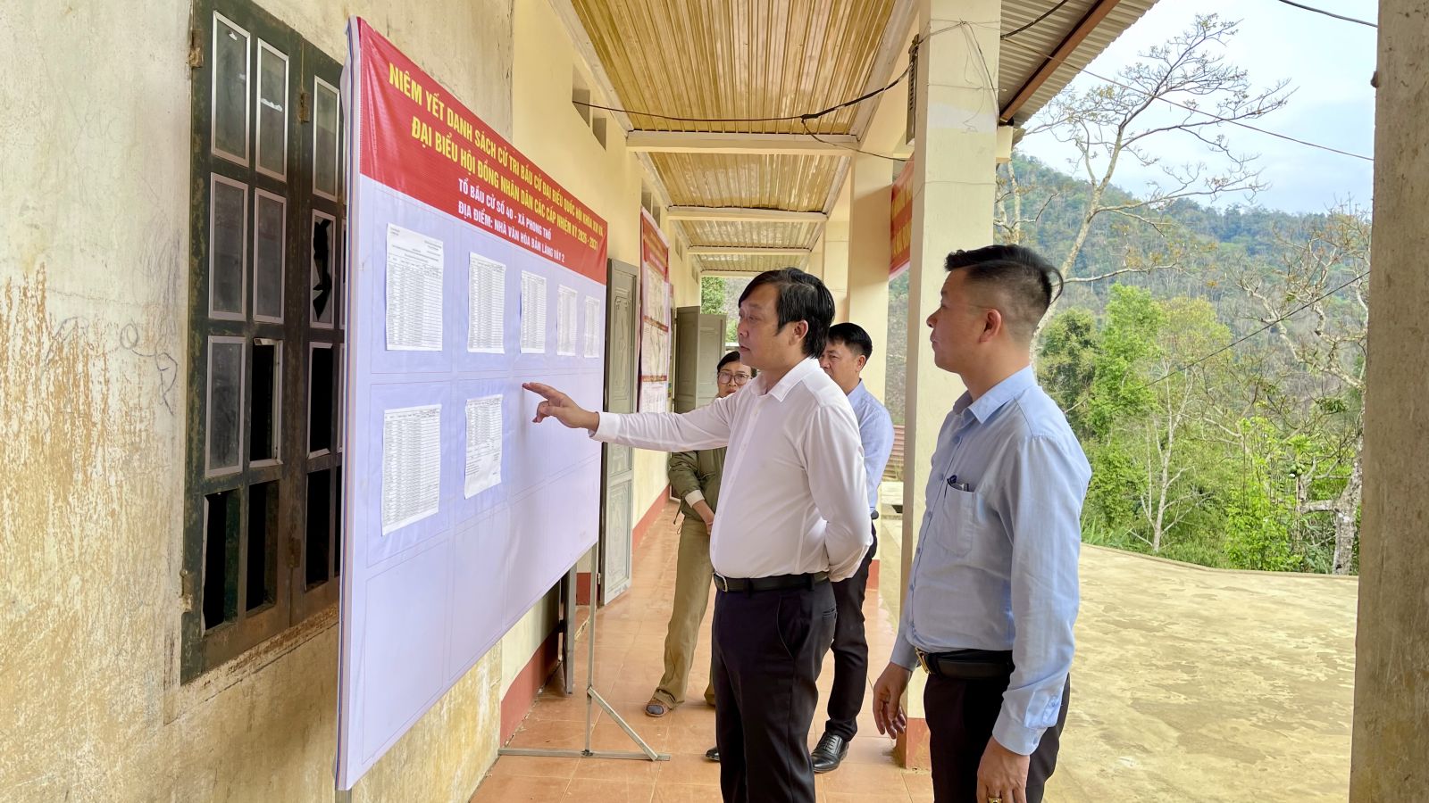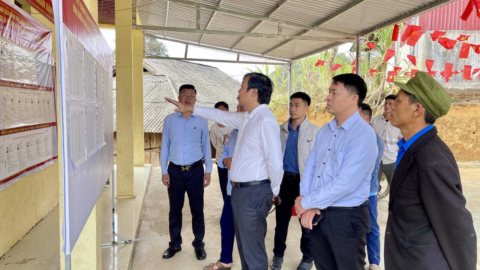 Đoàn công tác do đồng chí Đinh Quang Tuấn - Ủy viên Ban Chấp hành Đảng bộ tỉnh, Bí thư Đảng ủy, Chủ tịch HĐND xã, Trưởng Ban Chỉ đạo bầu cử, Trưởng Đoàn công tác kiểm tra công tác chuẩn bị bầu cử tại khu vực bỏ phiếu số 40 bản Làng Vây 2