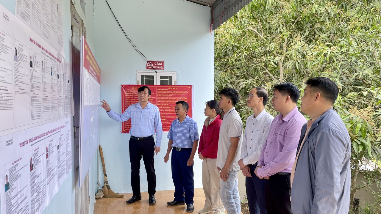 Đoàn công tác do đồng chí Lê Hữu Hồng - Phó Bí thư Đảng ủy, Chủ tịch UBND xã, Phó Trưởng Ban Chỉ đạo bầu cử, Trưởng Đoàn công tác kiểm tra công tác chuẩn bị bầu cử tại khu vực bỏ phiếu số 20 bản Sòn Thầu 2.