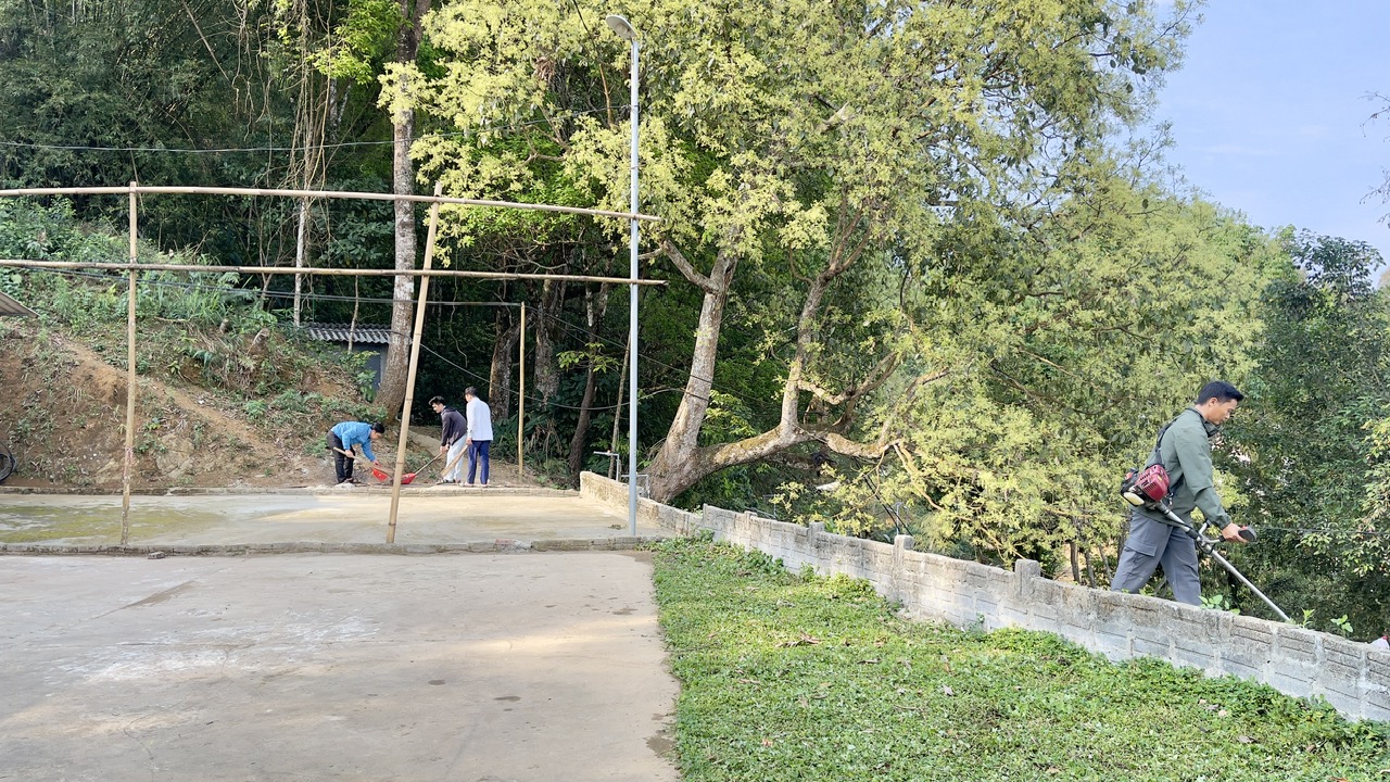 Thành viên Tổ bầu cử và Nhân dân lao động, dọn dẹp vệ sinh khu vực bỏ phiếu số 14 bản Ma Ly Pho
