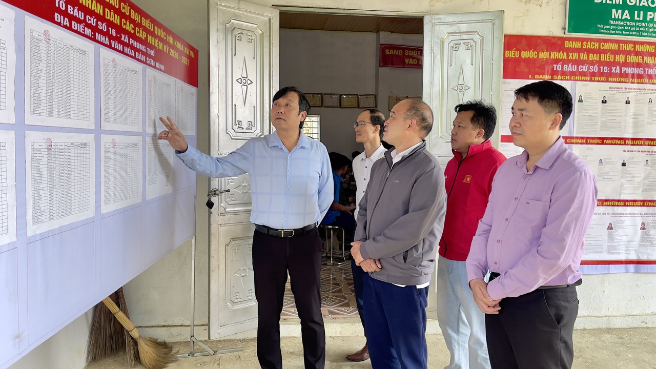 Đoàn công tác do đồng chí Đinh Quang Tuấn - Ủy viên Ban Chấp hành Đảng bộ tỉnh, Bí thư Đảng ủy, Chủ tịch HĐND xã, Trưởng Ban Chỉ đạo bầu cử, Trưởng Đoàn công tác kiểm tra công tác chuẩn bị bầu cử tại khu vực bỏ phiếu số 14 bản Ma Ly Pho.