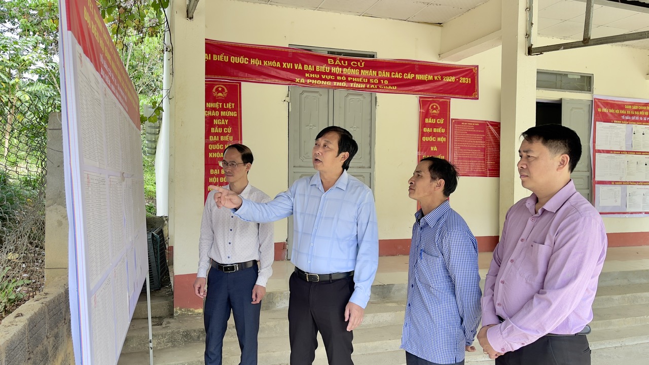 Đoàn công tác do đồng chí Đinh Quang Tuấn - Ủy viên Ban Chấp hành Đảng bộ tỉnh, Bí thư Đảng ủy, Chủ tịch HĐND xã, Trưởng Ban Chỉ đạo bầu cử, Trưởng Đoàn công tác kiểm tra công tác chuẩn bị bầu cử tại khu vực bỏ phiếu số 36 bản Ngài Chồ