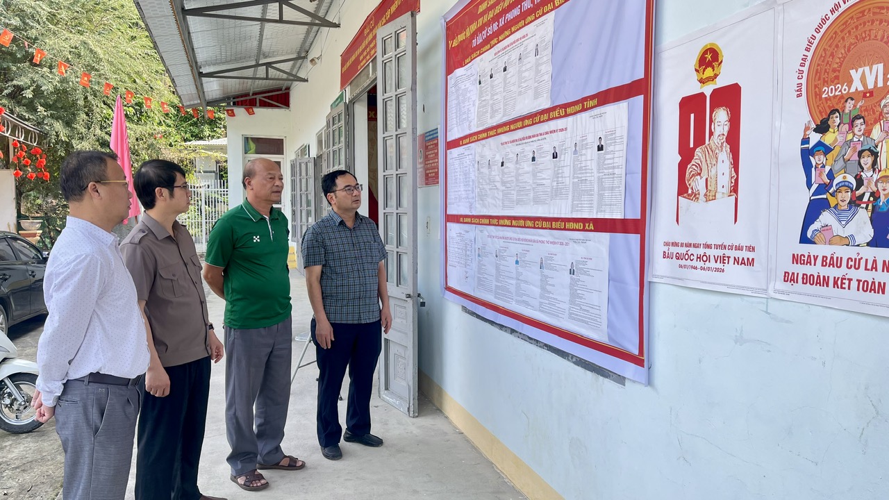 Đoàn công tác do đồng chí Lê Hữu Hồng - Phó Bí thư Đảng ủy, Chủ tịch UBND xã, Phó Trưởng Ban Chỉ đạo bầu cử, Trưởng Đoàn công tác kiểm tra công tác chuẩn bị bầu cử tại khu vực bỏ phiếu số 6 thôn Đoàn Kết.
