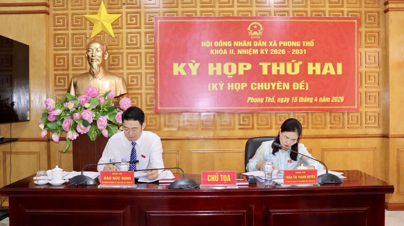 Sáng ngày 15/4, HĐND xã Phong Thổ khóa II, nhiệm kỳ 2026 - 2031 tổ chức kỳ họp thứ hai (kỳ họp chuyên đề) để xem xét, quyết định các vấn đề thuộc thẩm quyền. Đồng chí Đào Đức Định – Ủy viên Ban Thường vụ Đảng ủy, Phó Chủ tịch HĐND xã; đồng chí Trần Thị Thanh Huyền - Ủy viên Ban Thường vụ Đảng ủy, Chủ nhiệm Ủy ban kiểm tra Đảng ủy xã đồng chủ trì kỳ họp. Dự kỳ họp có các đồng chí Thường trực Đảng ủy, HĐND, UBND, Ủy ban MTTQ Việt Nam xã; các đại biểu HĐND xã khóa II; đại diện lãnh đạo các cơ quan, đơn vị, phòng ban chuyên môn xã.