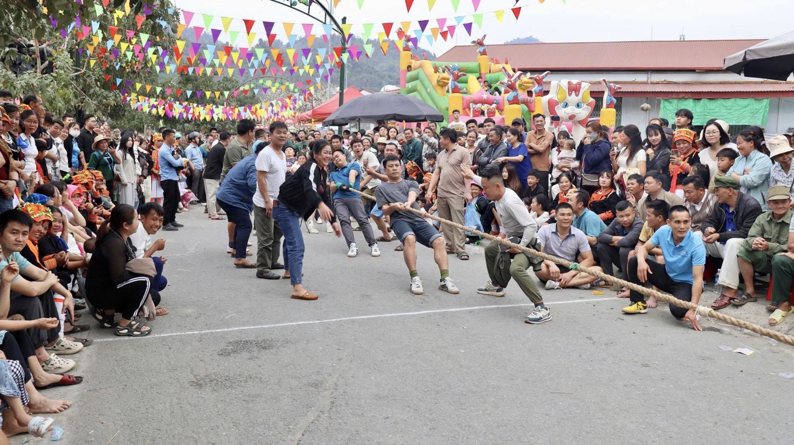 Các hoạt động thể thao, trò chơi dân gian như đẩy gậy, tung còn, kéo co, bịt mắt bắt vịt, bịt mắt gõ chiêng,… cũng thu hút đông đảo các vận động viên tham gia. Những tiếng hò reo, cổ cũ của người dân và du khách tạo cho không khí ngày hội thêm phần rộn ràng, sôi động, tràn đầy niềm vui và ý nghĩa.