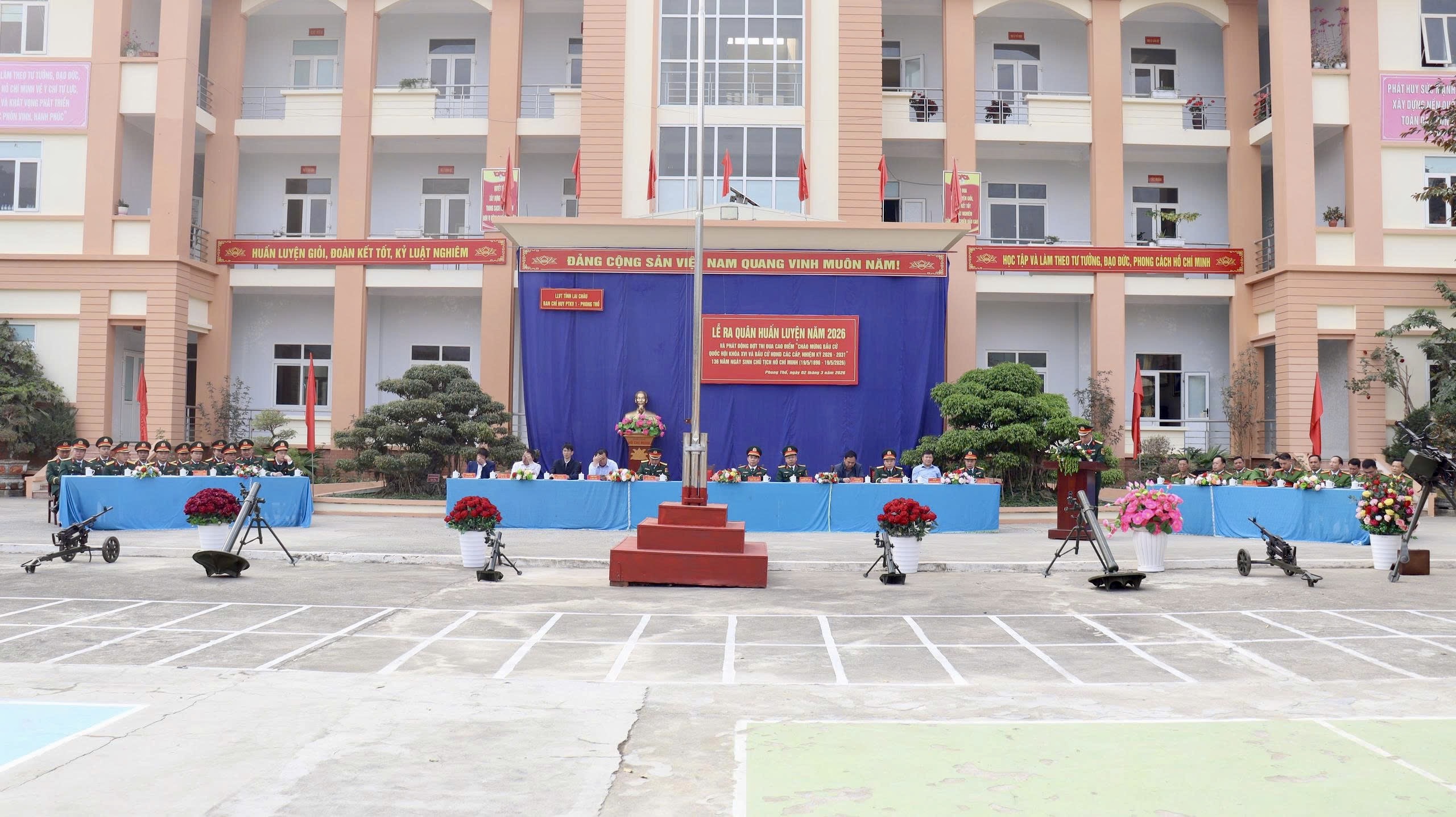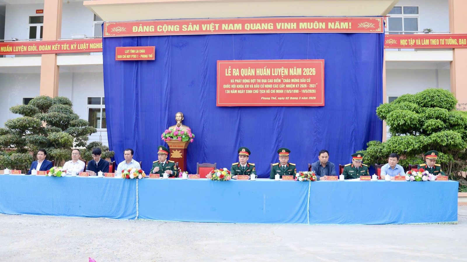 Sáng 2/3, Ban Chỉ huy Khu vực phòng thủ 1 - Phong Thổ tổ chức Lễ ra quân huấn luyện năm 2026 và phát động đợt thi đua cao điểm “Chào mừng bầu cử đại biểu Quốc hội khóa XVI và HĐND các cấp nhiệm kỳ 2026-2031”; 136 năm ngày sinh Chủ tịch Hồ Chí Minh 19/5/1890-19/5/2026. Dự buổi lễ có đồng chí Đại tá Phùng Duy Giáp – Phó Chỉ huy trưởng Bộ Chỉ huy Quân sự tỉnh; đại diện lãnh đạo UBND 12 xã; Công an xã, Ban Chỉ huy quân sự xã, Lực lượng Dân quân tự vệ; thầy cô giáo và các em học sinh.