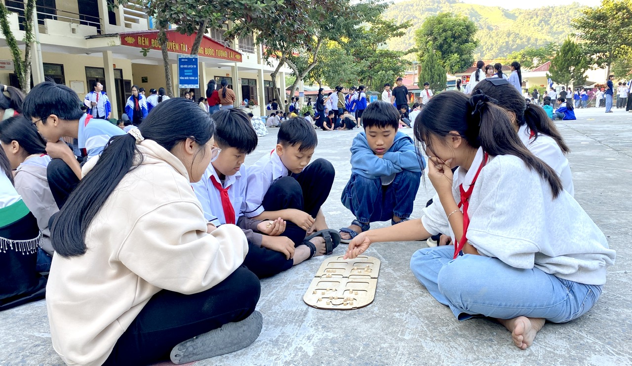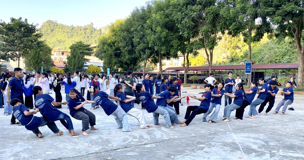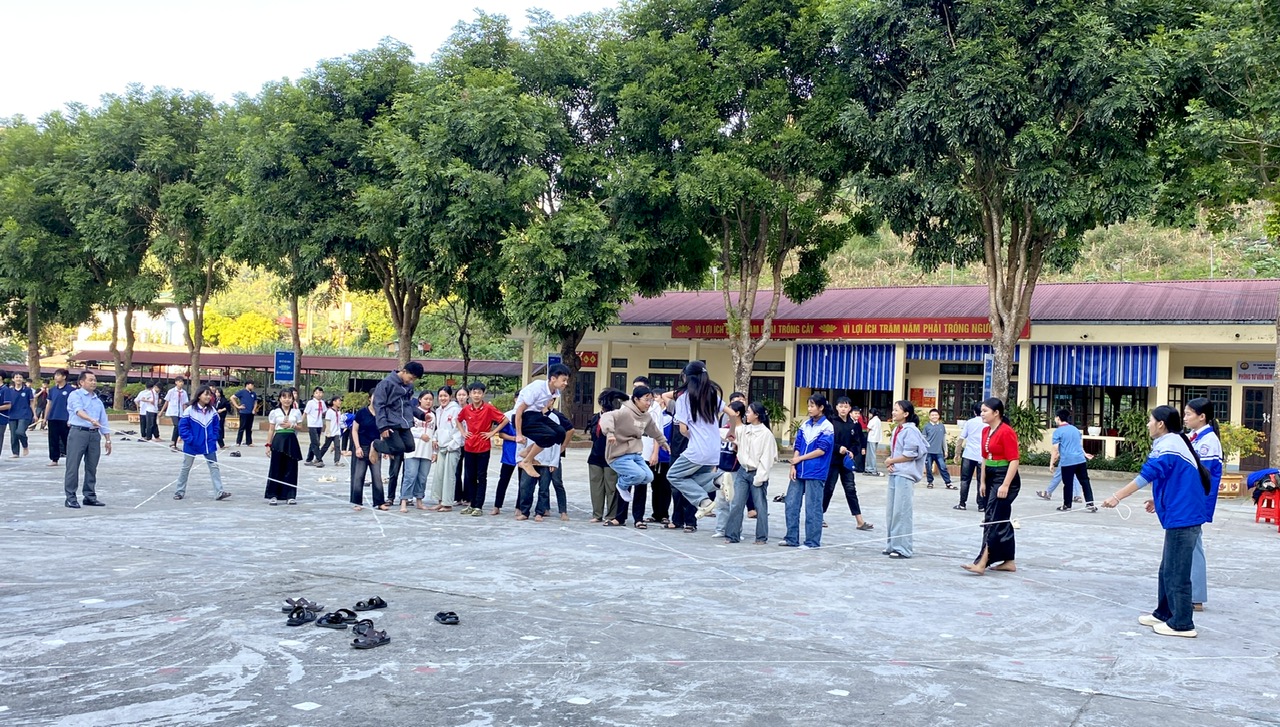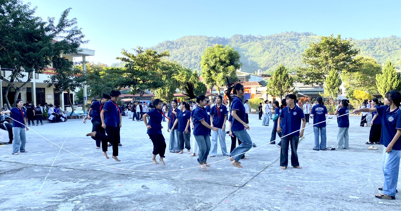 Tiếp nối chương trình, học sinh các khối lớp tham gia nhiều hoạt động phong phú. Đặc biệt, khối lớp 8 đã tái hiện những trò chơi độc đáo của các dân tộc Thái như tó má lẹ, tó én cáy, góp phần giúp các em thêm tự hào về văn hóa quê hương. Không khí càng trở nên sôi nổi hơn với trò chơi kéo co và nhảy dây của khối lớp 9, chơi trò ô ăn quan của khối lớp 7 thu hút sự cổ vũ nhiệt tình của bạn bè và các thầy, cô giáo.