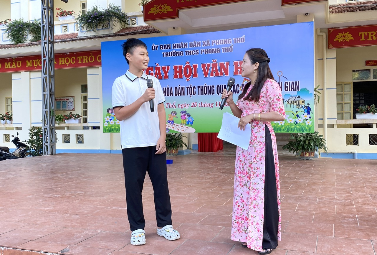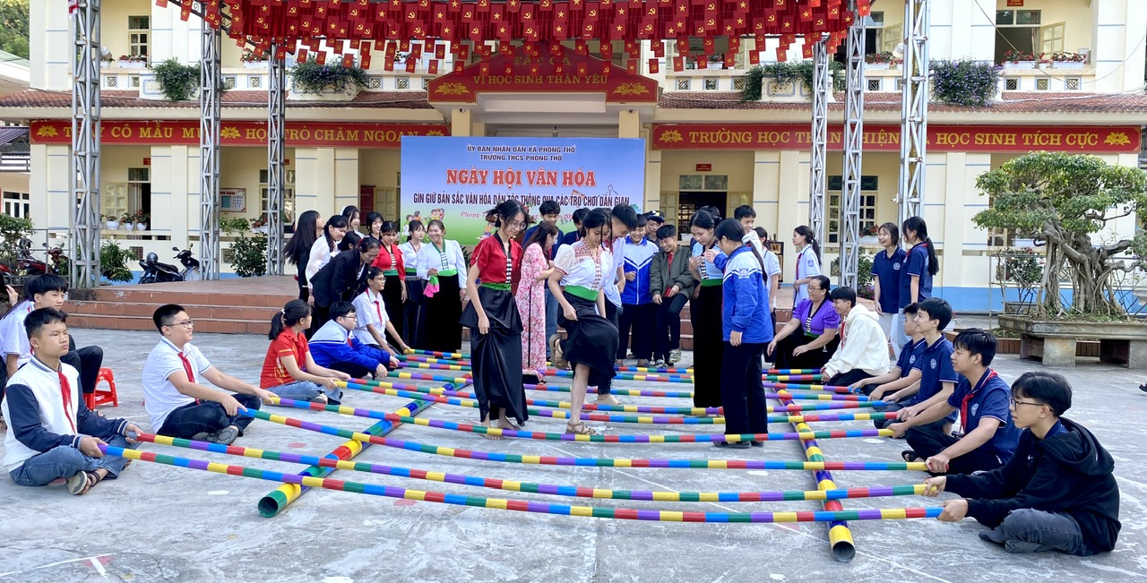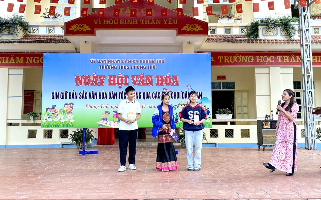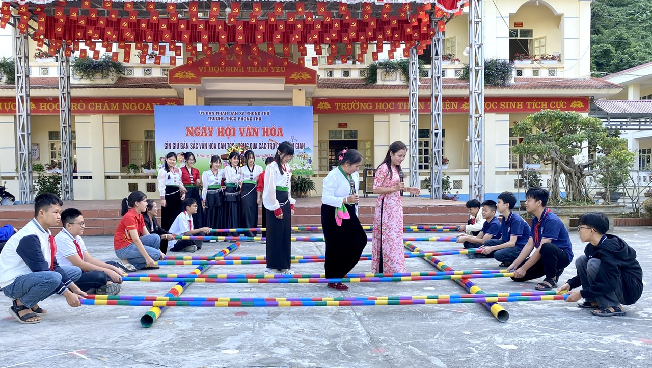 Chiều 25/11, trong không khí háo hức, hàng trăm học sinh Trường THCS Phong Thổ đã cùng nhau tham gia Ngày hội văn hóa với chủ đề “Giữ gìn bản sắc văn hóa dân tộc thông qua các trò chơi dân gian”. Hoạt động không chỉ góp phần tuyên truyền, giáo dục ý thức gìn giữ và phát huy giá trị truyền thống, mà còn giúp các em thêm hiểu, thêm yêu văn hóa của dân tộc mình.