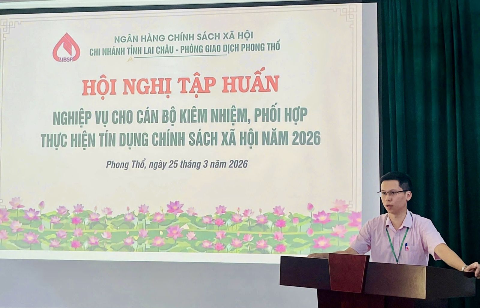Từ ngày 23 - 26/3, Phòng giao dịch Ngân hàng Chính sách xã hội Phong Thổ tổ chức tập huấn nghiệp vụ dành cho đội ngũ cán bộ kiêm nhiệm, phối hợp thực hiện tín dụng chính sách trên địa bàn xã Phong Thổ. Tham gia lớp tập huấn có các đồng chí lãnh đạo, Ủy viên Ban Thường vụ các tổ chức chính trị - xã hội nhận ủy thác; Trưởng các thôn, bản, tổ dân phố; Ban quản lý các Tổ Tiết kiệm và Vay vốn (TK&VV) tại các điểm giao dịch trên địa bàn xã.