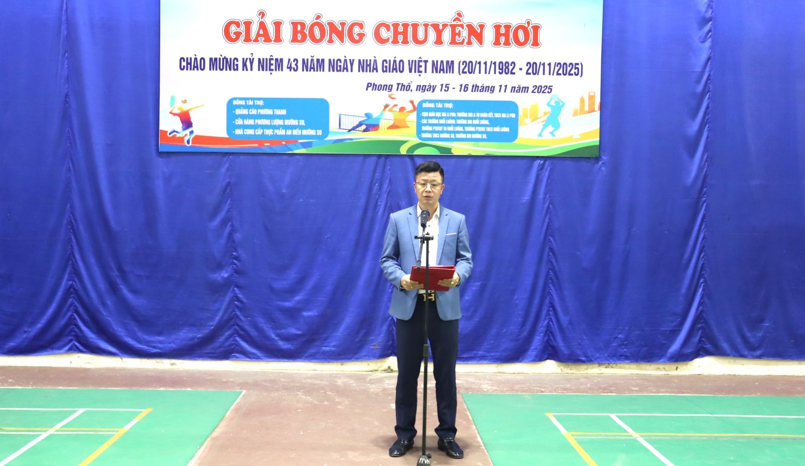 Sáng ngày 15/11, xã Phong Thổ long trọng tổ chức khai mạc Giải bóng chuyền hơi ngành Giáo dục năm 2025, thiết thực chào mừng kỷ niệm 43 năm Ngày Nhà giáo Việt Nam (20/11/1982 – 20/11/2025). Dự lễ khai mạc có đồng chí Trịnh Khắc Tấn – Ủy viên Ban Thường vụ, Phó Chủ tịch UBND xã; cùng các lãnh đạo phòng VH_XH xã, Trung tâm VHTT&TH, đại diện lãnh đạo các đơn vị trường học cùng đông đảo cán bộ, giáo viên trên địa bàn xã.