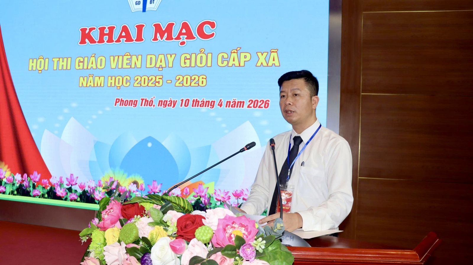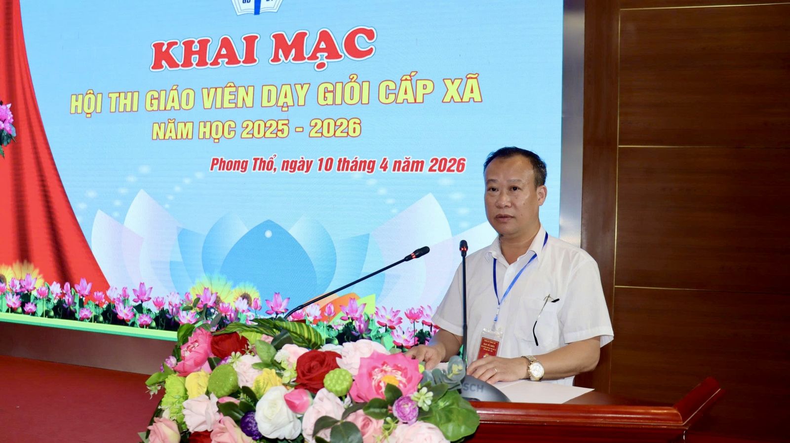 Phát biểu tại Lễ Khai mạc, đồng chí Trịnh Khắc Tấn - Ủy viên Ban Thường vụ Đảng ủy, Phó Chủ tịch UBND xã, Trưởng Ban tổ chức Hội thi ghi nhận, biểu dương sự nỗ lực của các nhà trường và đội ngũ giáo viên trong thời gian qua. Đồng chí nhấn mạnh: Trong bối cảnh toàn ngành đang triển khai Chương trình giáo dục phổ thông 2018, yêu cầu đổi mới phương pháp dạy học, kiểm tra, đánh giá theo định hướng phát triển phẩm chất, năng lực học sinh ngày càng rõ nét. Hội thi là dịp quan trọng để đánh giá thực chất năng lực chuyên môn, nghiệp vụ sư phạm của đội ngũ giáo viên, đồng thời tạo môi trường để các thầy cô được thể hiện năng lực, học tập, chia sẻ kinh nghiệm giảng dạy, lan tỏa những phương pháp dạy học hay, sáng tạo, hiệu quả, phù hợp với thực tiễn. Đồng chí đề nghị các thành viên trong Ban tổ chức, Ban Giám khảo làm việc với tinh thần công tâm, khách quan, chính xác; các thầy cô giáo phát huy năng lực, tự tin thể hiện chuyên môn, góp phần thúc đẩy phong trào thi đua “Dạy tốt – Học tốt”, nâng cao chất lượng giáo dục toàn diện của xã Phong Thổ trong giai đoạn mới.