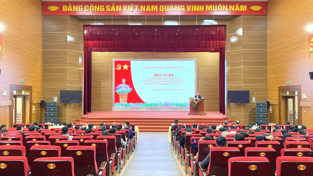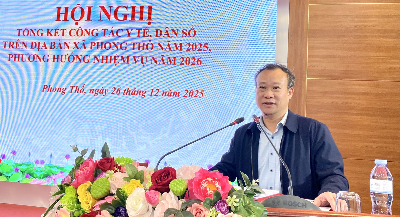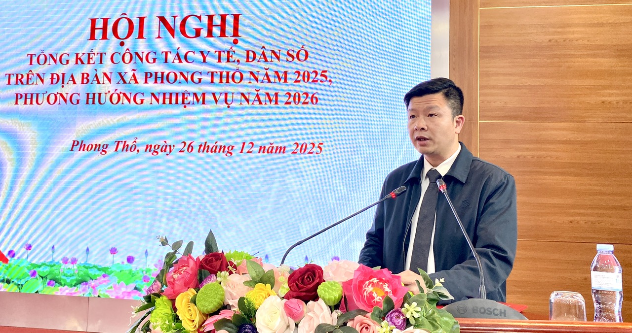 Chiều 26/12, UBND xã Phong Thổ tổ chức hội nghị tổng kết công tác y tế, dân số năm 2025, phương hướng nhiệm vụ trọng tâm năm 2026. Đồng chí Trịnh Khắc Tấn - Ủy viên BTV Đảng ủy, Phó Chủ tịch UBND xã dự và chỉ đạo hội nghị.
