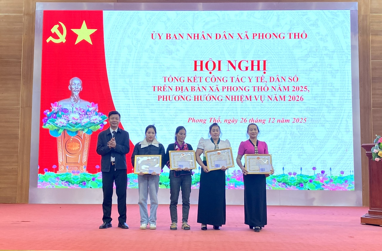 Nhân dịp này, trưởng Ban Chỉ đạo Chăm sóc sức khỏe nhân dân xã đã tặng giấy khen cho 4 cá nhân đã có thành tích tiêu biểu trong công tác y tế tại cộng đồng trên địa bàn xã Phong Thô năm 2025.