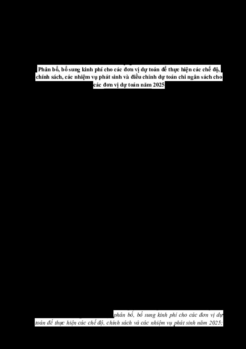 | Tiêu đề văn bản | NGHỊ QUYẾT Phân bổ, bổ sung kinh phí cho các đơn vị dự toán để thực hiện các chế độ, chính sách, các nhiệm vụ phát sinh và điều chỉnh dự toán chi ngân sách cho các đơn vị dự toán năm 2025 | ||